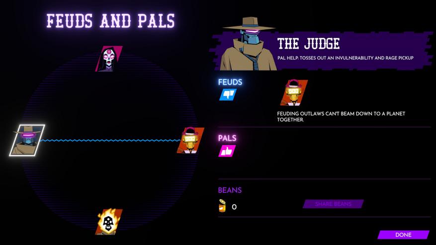 Кроме того, в банде есть система взаимоотношений между её членами. Например, враждующие герои не смогу высаживать на планеты вместе.