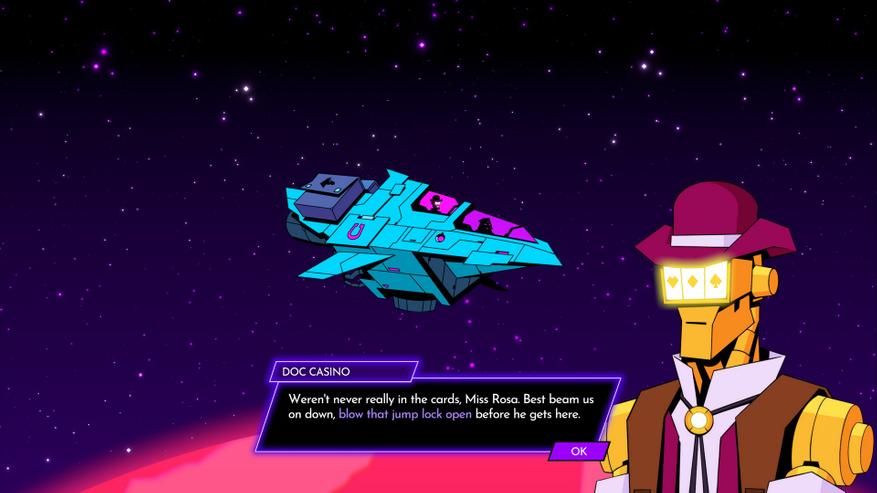 В игре мультяшная графика, такая же, как в Void Bastards или Borderlands. Тем не менее выглядит она неплохо. Отдельной похвалы заслуживает стилистика. Небольшие локации представляют из себя некий микс из Дикого Запада и хайтека. Выглядит здорово.