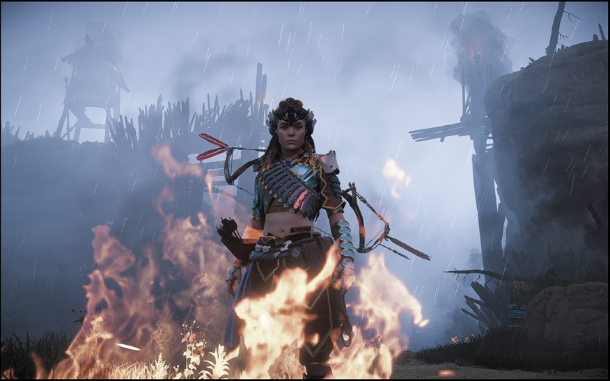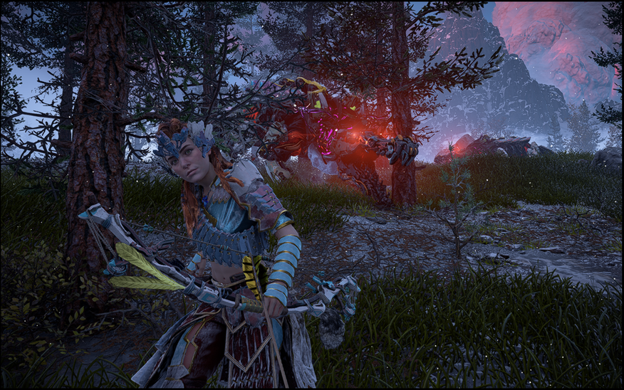 Стилистически перерожденный вследствие ужасной катастрофы мир «Хорайзон» легко узнаваем даже спустя столько лет после релиза. Перед художниками из «Guerrilla Games» стояла задача создать на 100 процентов оригинальную экосистему в которой угадывались и гармонично сосуществовали бы черты двух не похожих друг на друга эпох.