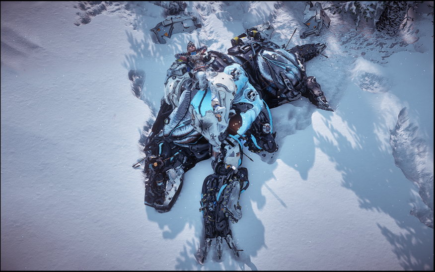 Для того чтобы мы не заскучали создатели приготовили аж 25 видов таких машин в основной игре и завезли ещё 4 в дополнении «The Frozen Wilds». Схватка с каждой из них — это вызов, который на начальном этапе требует тщательной подготовки. Механика ведения боя основана на изучении врага. Одни твари быстрые и юркие, но и бьют относительно не больно, вторые наоборот неповоротливы, но попадаться им лучше не стоит — велика вероятность сильно огрести и испустить дух, а третьи вообще громадины, оснащенные мощными пушками, с лихвой компенсирующими их малую мобильность огневой мощью и способностью вести огонь на внушительном расстоянии.