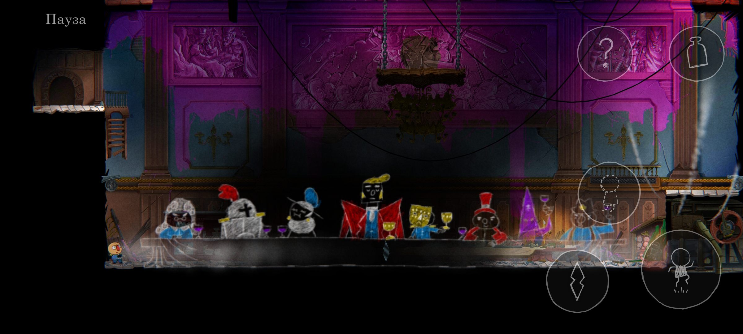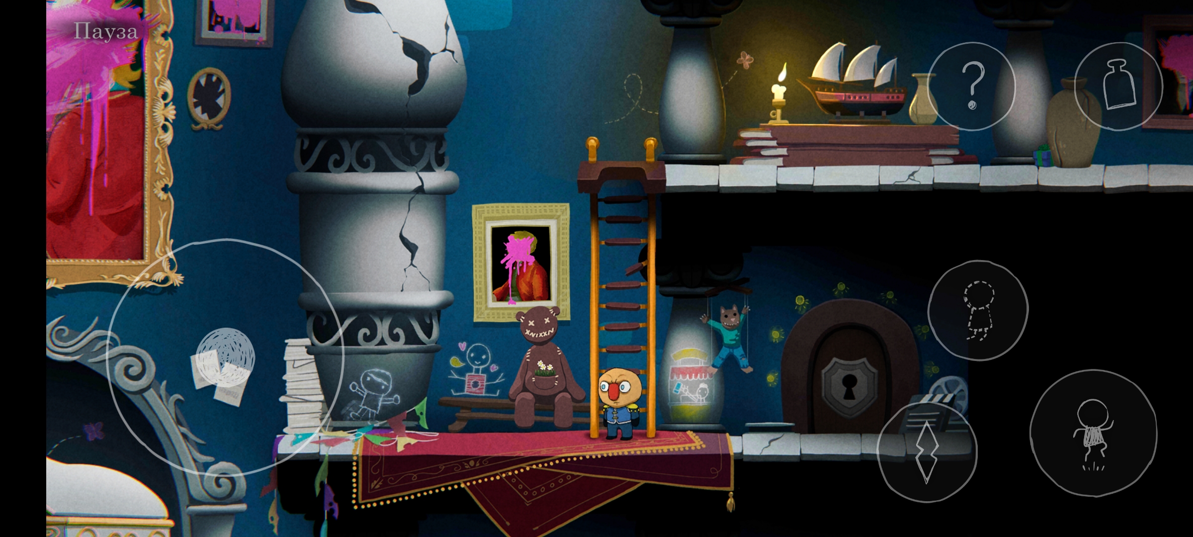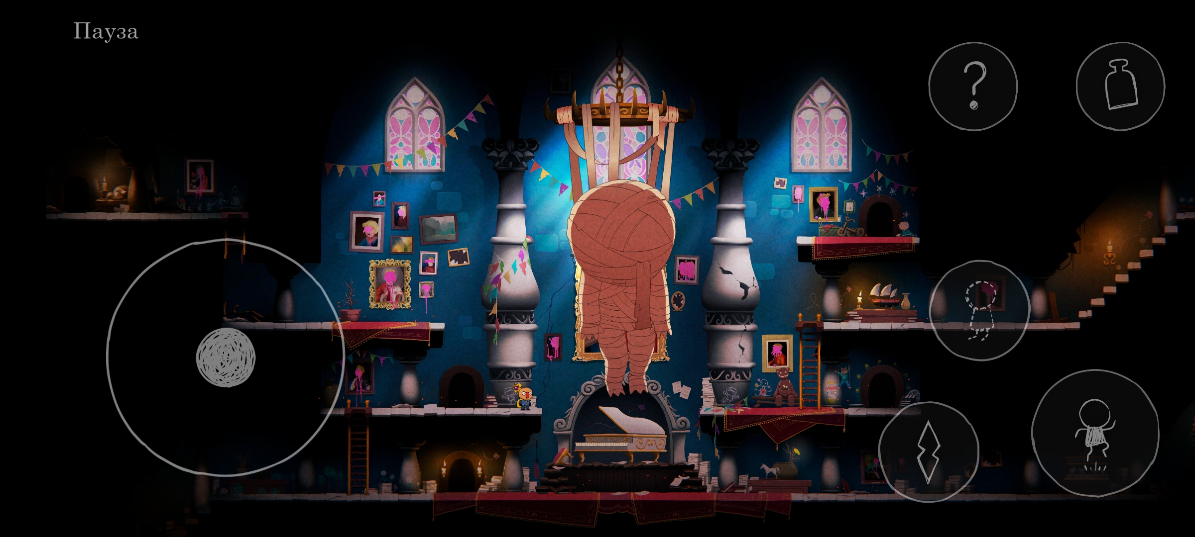 Сюжет Ugly подаётся через окружение и отдельные рисованные заставки, которые раскиданы по локациям. Чтобы посмотреть сценарные картинки, нужно находить специально обозначенные, несложные загадки, решение которых запускает изображение. Ни по содержанию, ни по визуалу заставки мне не зашли. А вот сюжет через окружение передан великолепно, хотя сама история пресная. Описание игры однозначно заявляет нам, что всё происходящее — это сон собаки, путешествие по глубинам разума, чего лично я в сценаристике терпеть не могу. Подсмыслы про несчастную семью аристократа (не спойлер, тоже есть в описании игры) не трогают, так как подаётся проблематика очень однобоко. Я не увидел тут вопросов социального расслоения, неравенства, интриг высших слоёв знати. И даже дилеммы отцов и детей, как по мне, показаны весьма поверхностно.