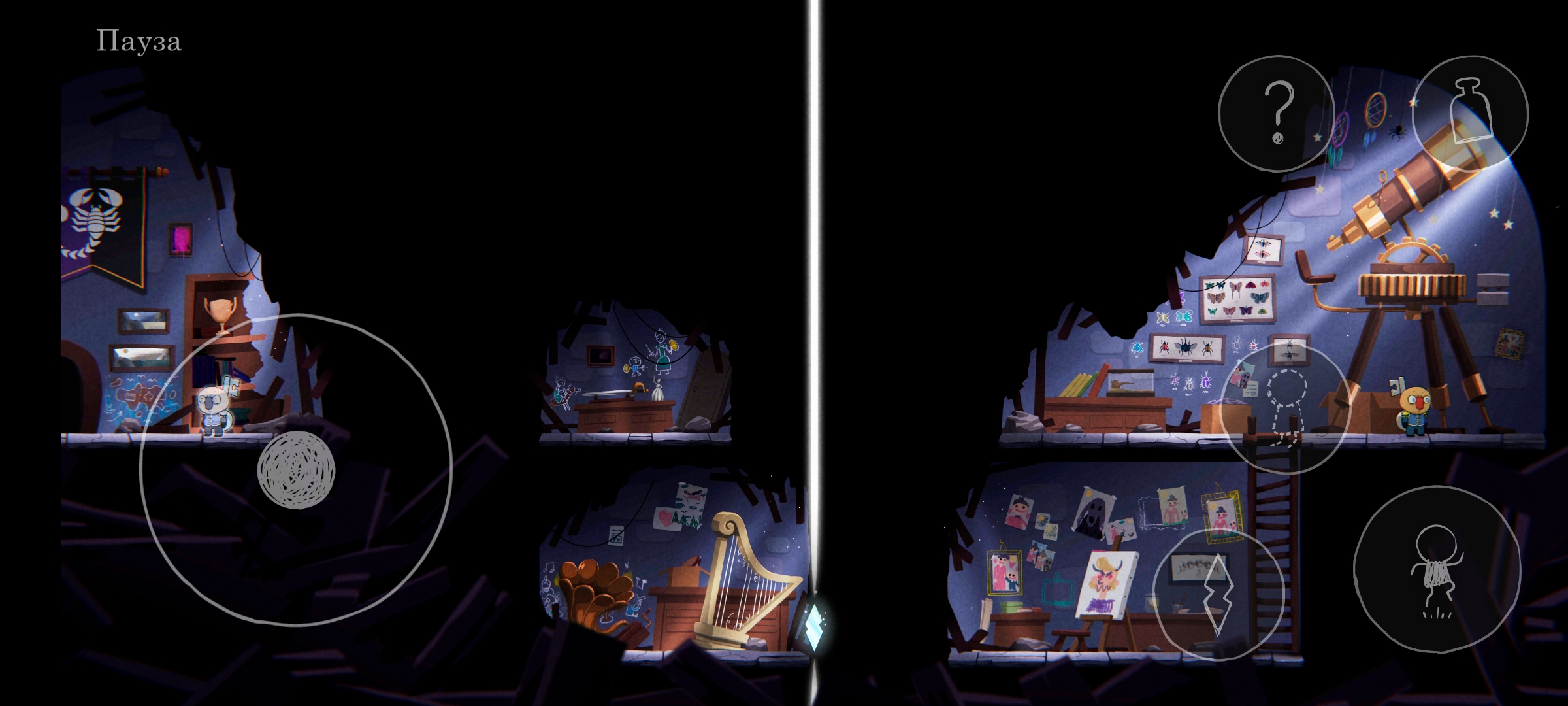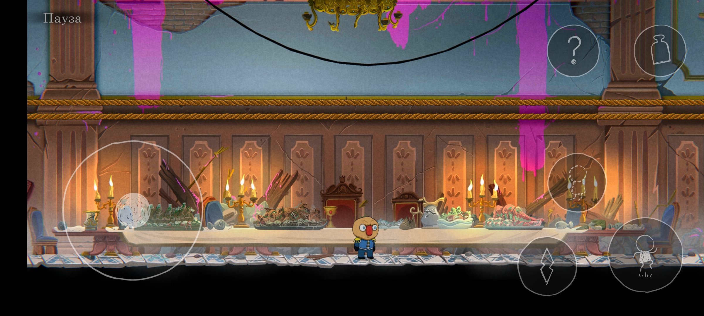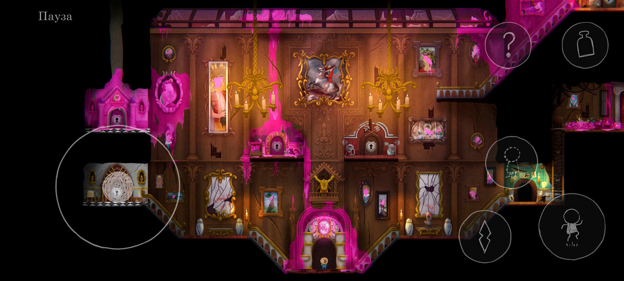 Сюжет Ugly подаётся через окружение и отдельные рисованные заставки, которые раскиданы по локациям. Чтобы посмотреть сценарные картинки, нужно находить специально обозначенные, несложные загадки, решение которых запускает изображение. Ни по содержанию, ни по визуалу заставки мне не зашли. А вот сюжет через окружение передан великолепно, хотя сама история пресная. Описание игры однозначно заявляет нам, что всё происходящее — это сон собаки, путешествие по глубинам разума, чего лично я в сценаристике терпеть не могу. Подсмыслы про несчастную семью аристократа (не спойлер, тоже есть в описании игры) не трогают, так как подаётся проблематика очень однобоко. Я не увидел тут вопросов социального расслоения, неравенства, интриг высших слоёв знати. И даже дилеммы отцов и детей, как по мне, показаны весьма поверхностно.