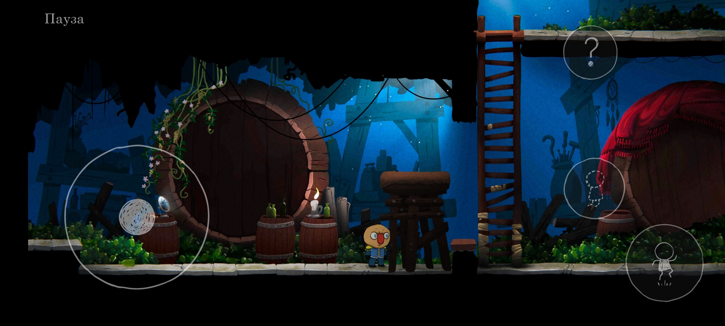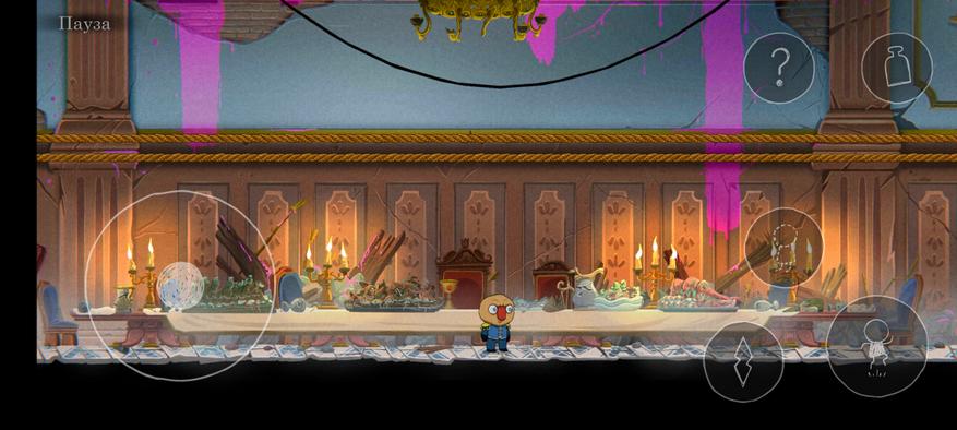 Анимации протагониста простенькие, они не выбиваются из мультяшной стилистики игры и перекрывают все необходимые игровые ситуации (типа бега, карабканья, толкания предметов, гулкого падения с высоты моськой вниз). Герой не превращается в камень, когда стоит, видно, как в такт дыханию движется грудная клетка, тело в целом, пружинят ноги. Также анимировано окружение, локации не становятся просто недвижимым фоном и реагируют на перемещение главного героя. Все копошения антуража прорисованы вручную, выглядят приятно, будь-то плавная анимация пламени свечи, или карусель, закружившаяся вдруг по кругу. Нормально анимированы и боссы, что важно для считывания тайминга их ударов. Главари уровней визуально выглядят весьма эффектно, и прописанные движения их тел не нарушают это ощущение эпичности.