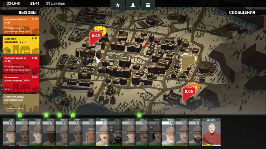Еще одно дополнение к формуле — полноценные тактические сражения в стиле XCOM. Вы можете назначить отряд офицеров для штурма локации в стиле спецназа, когда ситуация требует такого масштабного внимания. Те же нелетальные и смертельные варианты, которые доступны в обычном режиме — с помощью снаряжения или индивидуальных навыков — доступны и здесь. Характеристики здесь играют двойную роль — каждый ранг вашего офицера в характеристике открывает способность, которую можно использовать на этих картах. Полицейские с достаточно высокой силой могут, например, выбить дверь или перелезть через забор. Также эти характеристики влияют на успешность некоторых действий и в обычных вызовах. Также к этим сражениям можно подготовиться за счет сбора дополнительной информации у местных за определенные предметы. Так можно узнать количество противников, где они располагаются, наличие обходного пути и т.д. Однако, в этом режиме есть жирный минус — нельзя пропускать анимации действий ваших полицейских. Это особенно чувствуется если вам очень захотелось сделать идеальное прохождение, и вы уже раз 3-4 смотрите как все по очереди неспешна занимают одни и те же позиции.