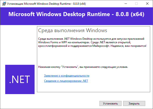 1. Скачиваем и устанавливаем .NET 8 (Зеркало).