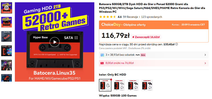 Жёсткие диски с Batocera. «Винт на 1 ТБ с предустановленной библиотекой» — это пиратский склад всего подряд от Atari до PS3. Звучит заманчиво, но обновлять и настраивать неудобно, библиотеки кривые, а что ещё китайцы туда зашили, и что на вашей системе будет запускаться параллельно с эмулятором из этого винта — хех, я даже не рискну предположить