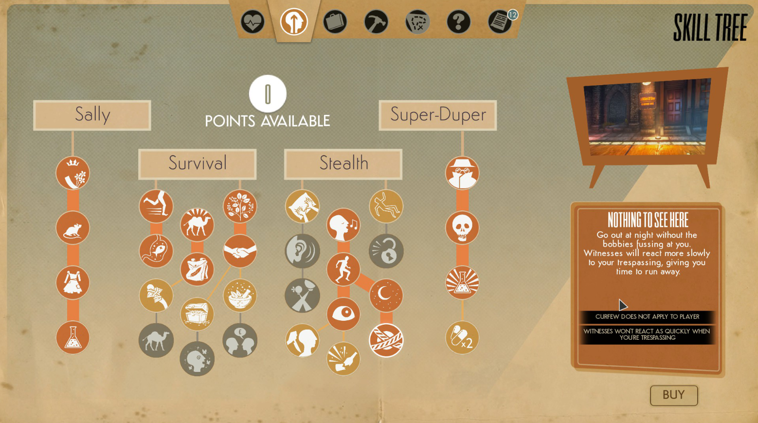Она здесь прямолинейна и не добавляет никакой вариативности. В первую очередь потому, что возможно прокачать в принципе все, выполняя все дополнительные задания, за которые даются очки опыта. Также сама игра вынуждает для большего комфорта прокачивать определенные способности в первую очередь. Это относится к иммунитету во время комендантского часа или безразличию к «неадекватному» поведению.