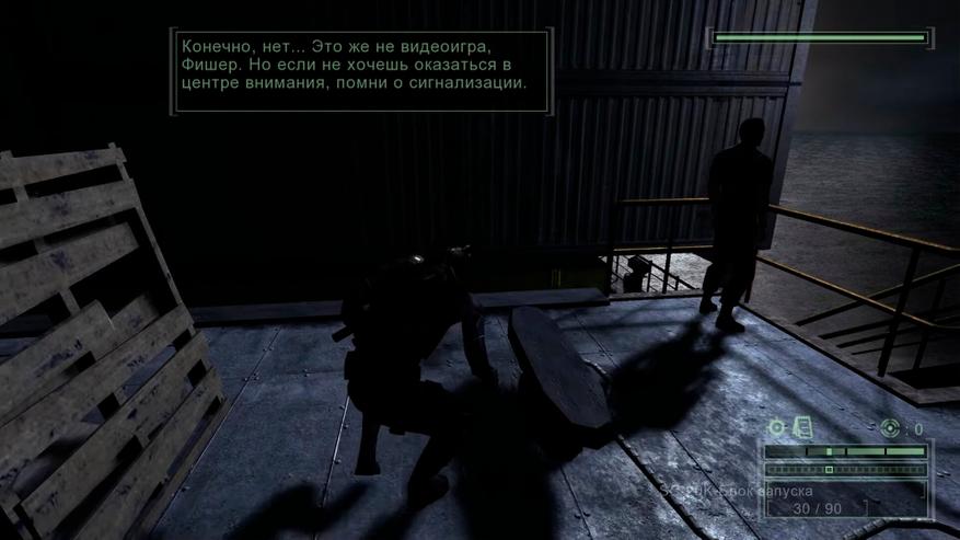 Так же при первом знакомстве с системой сигнализации Сэм недоумевает «Как, три сигнала и всё?». Но его координатор, тут же поясняет, что они не в видеоигре и срабатывание сигнализации лишь усложнит жизнь спецагента.