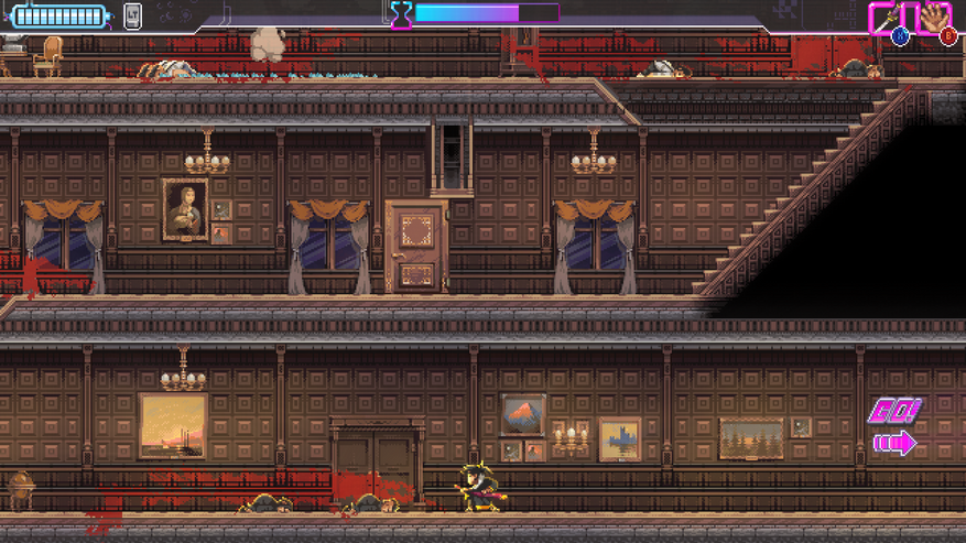 При помощи заигрываний со временем игрок будет декоративной нарезкой сокращать поголовье противников, и это вызывает закономерный вопрос: Зеро, ты живёшь во времена отнюдь не 15-го века! Почему вместо того, чтобы, как адекватный персонаж на манер Джона Уика, не взять пистолет?! Нет… Все уровни игрок будет проходить с катаной и метательным расходниками. Дохнут же тут рядовые противники и сам Зеро с одной тычки. Зато вот босса из отряда, будьте добры, затыкайте.