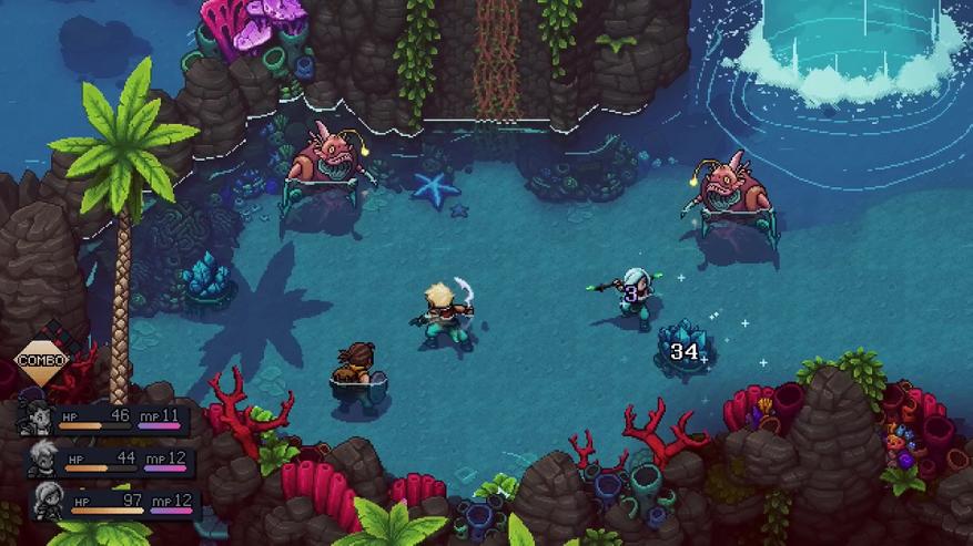 Важная составляющая Sea of Stars — это боевка, драться здесь придется часто. Боевая система выглядит достаточно просто и понятно, это классические пошаговые бои, но с некоторыми модернизациями. Боевая система основана на пошаговых сражениях с элементами экшена. Каждый герой обладает своими уникальными способностями, зависящими от времени суток и фазы луны. Помимо этого, игрок может наносить двойной удар при нажатии в определенный момент, блокировать атаки соперника при всем том же грамотном попадании в тайминг, а также использовать различные индивидуальные способности, усиленные магические атаки и групповые комбо.