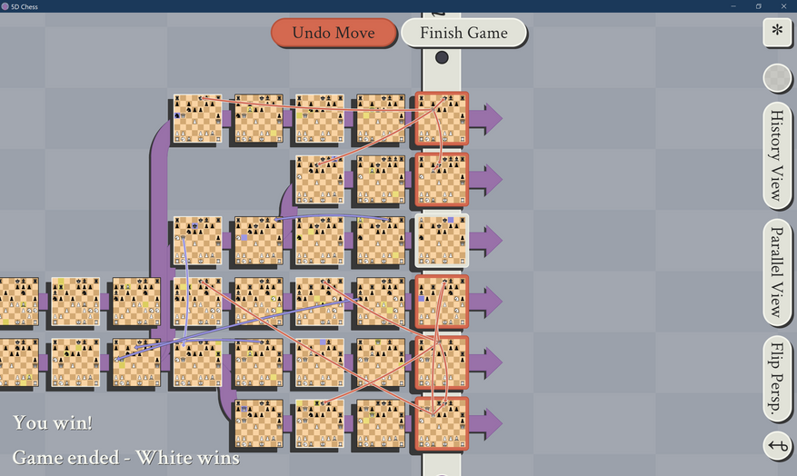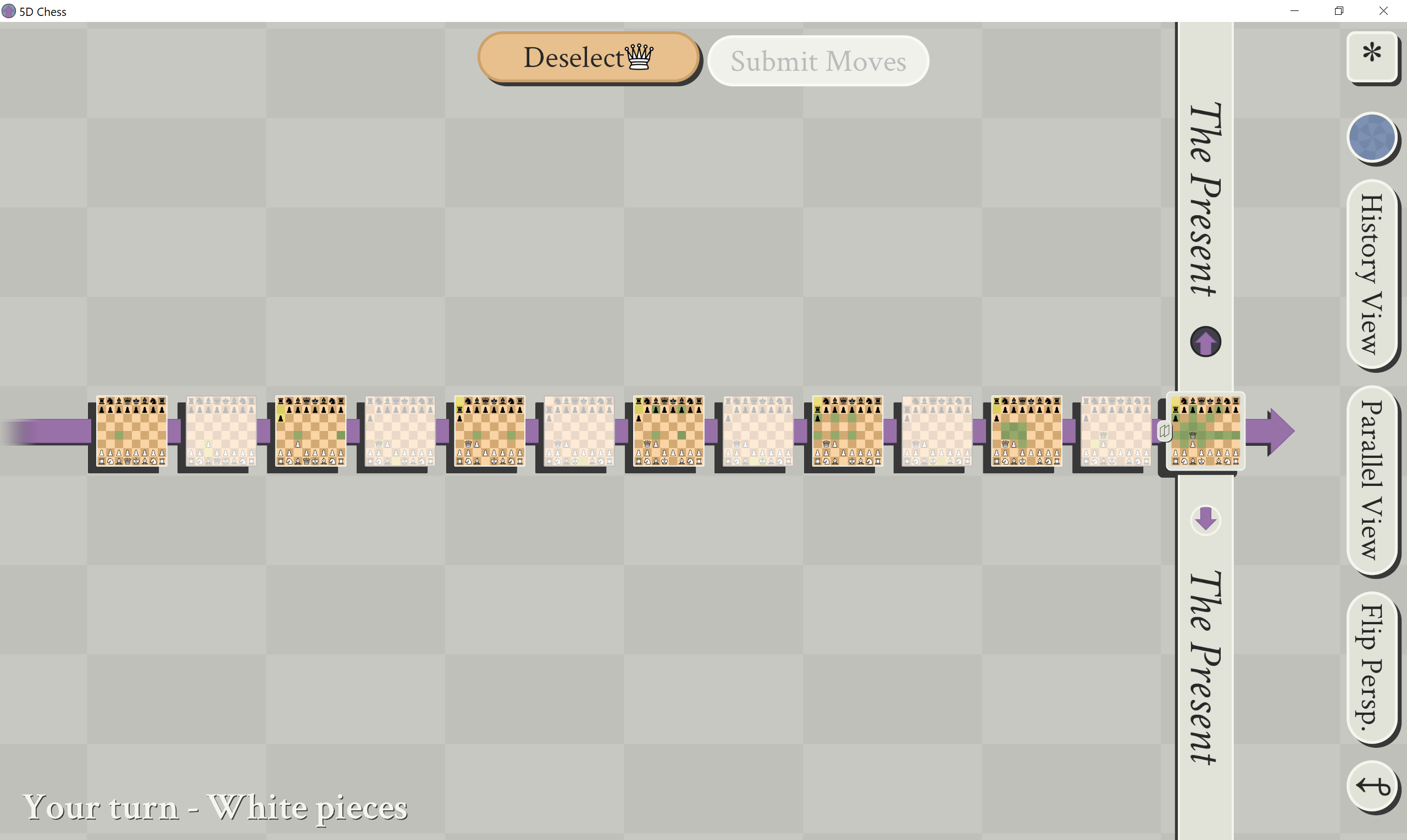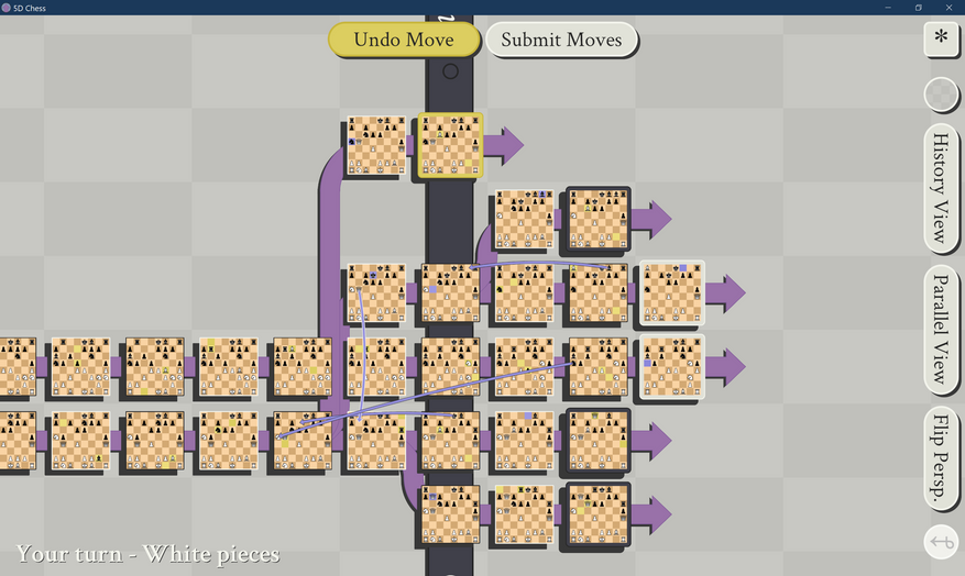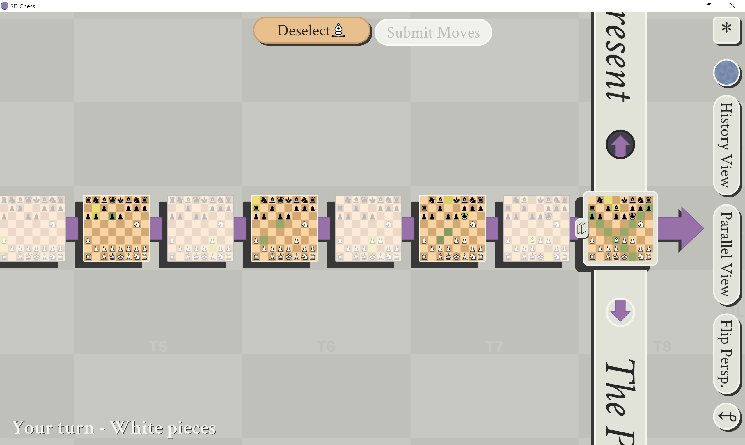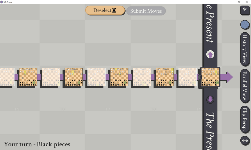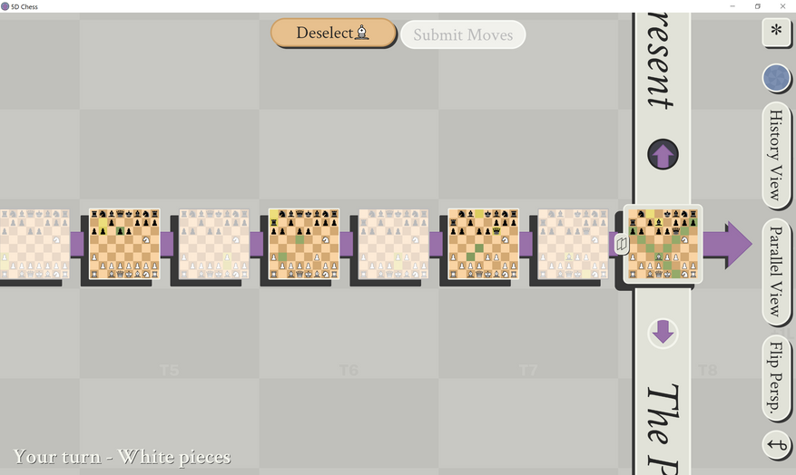 То есть, если взять того же ферзя на одной доске — это никак не повлияет ни на другие, ни на его же ипостаси в прошлом. А вот королю можно поставить мат на одной любой доске или даже в прошлое — и это завершит игру, так как при взятии одного короля «перестанут быть» и все остальные его ипостаси.