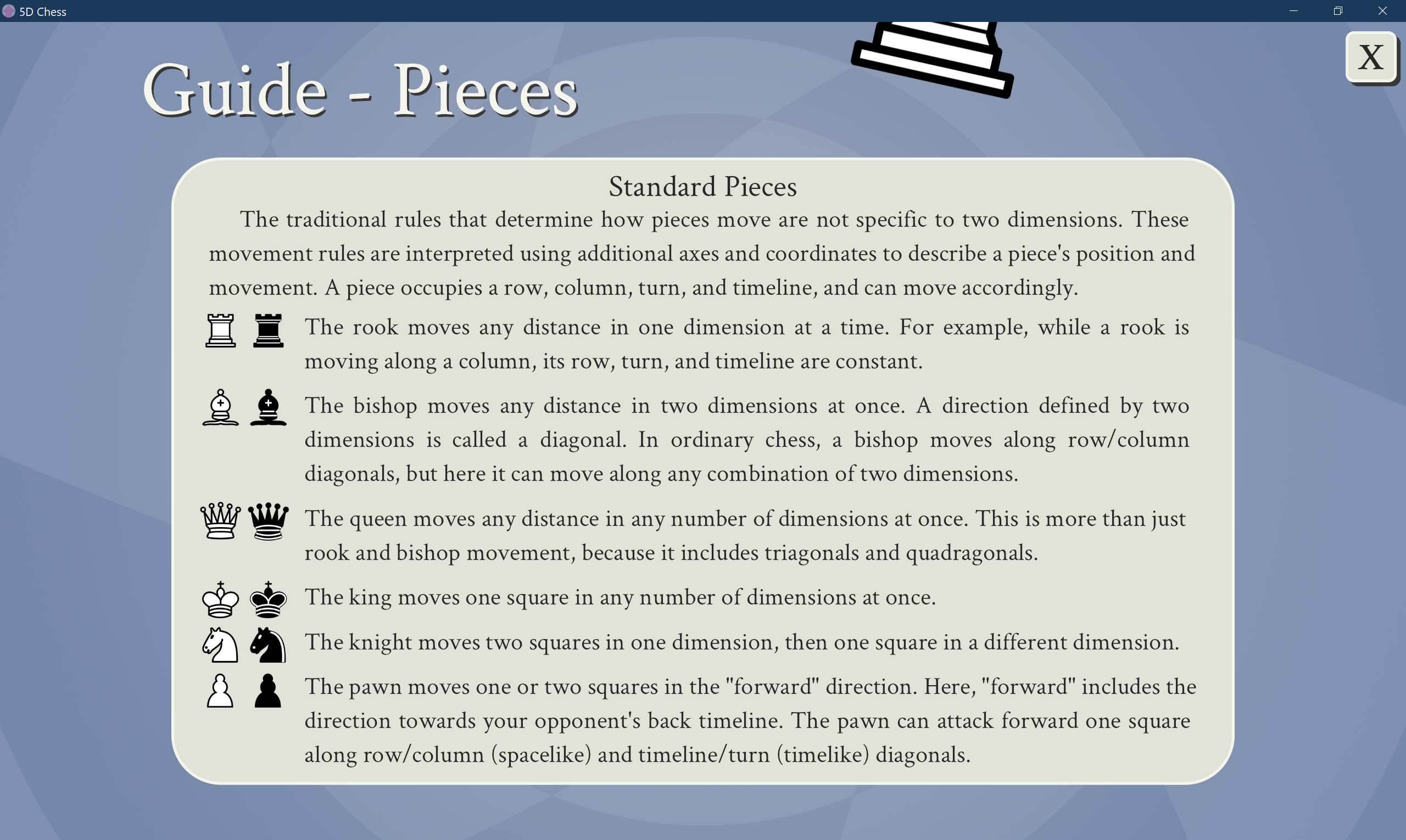 Разработчики из Thunkspace во главе с Коннором Петерсоном подошли к расширению шахматных правил с неожиданной стороны. Вместо добавления новых фигур, перевода игры в 3D или изменения размера доски они ввели две принципиально новых оси координат: временную и пространственную. Первая движется строго вперёд с каждым ходом, однако позволяет фигурам перемещаться в прошлое и будущее с рядом существенных оговорок, вторая — между параллельными досками, возникающими в результате временных парадоксов — она свободно проходима в обе стороны.