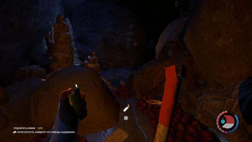 Когда я в пещере нашел современный топор, спустившись перед этим по канату, который еле увидел в пугающей тьме, освещенной огнем зажигалки и светом факела, меня постигло чувство радости от приятной находки. Сразу было интересно помахать этим топором, порубить им деревья. Он оказался значительно лучше первого топора из самолета и я прошагал с ним в дальнейшем каждую новую пещеру. Мне очень понравился такой ход разработчиков дарить игроку ощущения исследования и приз за риск и преодоление страха. Найти и опробовать в бою каждый новый предмет действительно вызывает желание подготовиться к вылазкам в пещеры и преодолеть препятствие в виде каннибалов и мутантов, препятствующих получению новой вещи. Также отмечу и в дальнейшем напишу подробнее об этом, что особенно приятно найти предметы без обращения к ютубу.