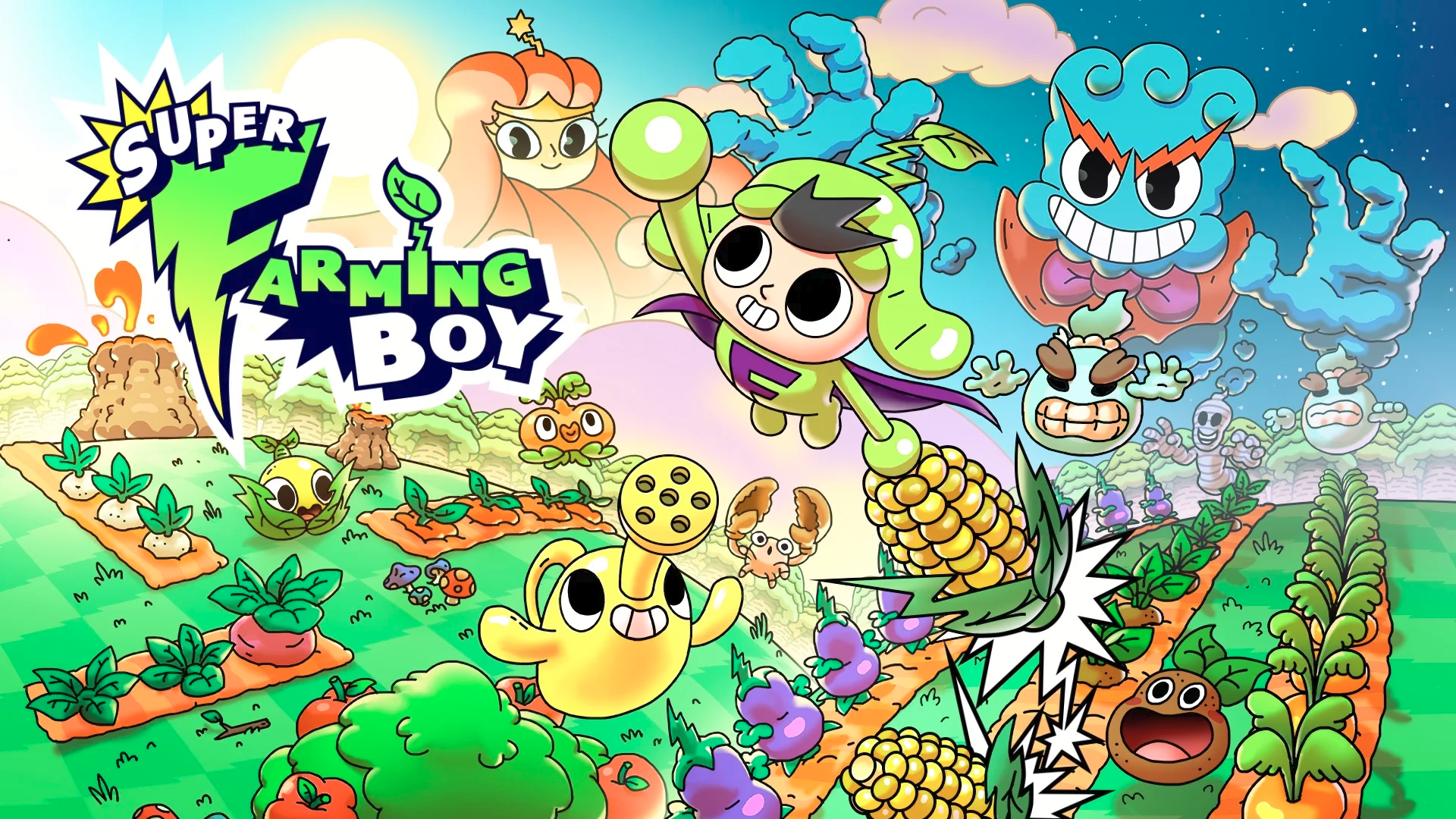 Super Farming Boy предлагает игрокам уникальное сочетание элементов экшена, головоломки и фермерского симулятора с упором на создание цепных реакций и комбо. По сюжету главный герой по имени Супер должен спасти свою маму и друзей, которых захватила злая корпорация KORPO. Злодеи заставляют героя работать на собственной земле, облагая налогом все доходы, и единственный способ освободить близких — заработать достаточно средств на их выкуп.