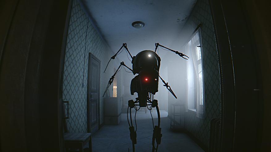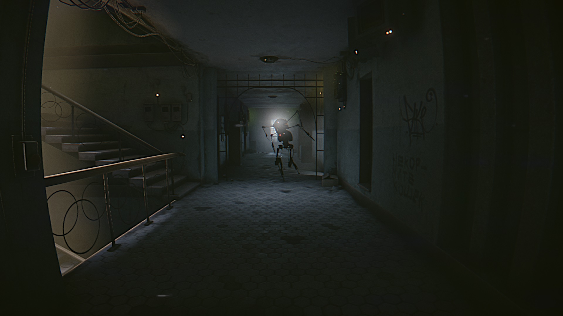 Антураж представлен в ретро — футуристичном стиле, где совмещаются объекты и архитектура советского периода, отчасти девяностых и киберпанка. С художественной точки зрения образы, созданные разработчиком, напоминают работы «Байки из петли» Саймона Столенхага, «Движение миров», «Метрономикон» Алексея Андреева, в чём сходятся многие блогеры в своих обзорах демо. Я бы добавил сюда ещё толику гигеровщины, а конкретно вайбов Чужого. На такие ассоциации наталкивает, например, мрачное помещение со свисающими с потолка цепями в первой локации, а также змеящиеся, будто живые, жуткие трубы недалеко от него. Не отпускало ощущение, что ксеноморф вот-вот почтит нас своим присутствием с тихим шипением. В игре интересный артдизайн. Фоторежим позволяет запечатлеть окружение по своему художественному виденью.