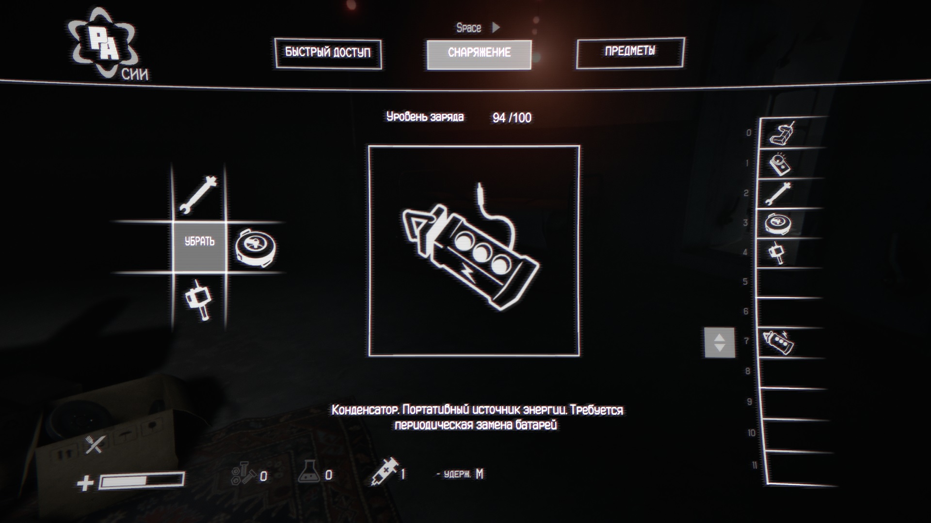 Тщательное изучение окружения в играх жанра adventure, квестах является важнейшей частью геймплея. Разработчик раскидал по локациям большое количество деталей, которые не только дают понимание сюжета, ЛОРа, но и помогают решать местные головоломки, а также находить ресурсы, как например, батареи, еду. На экране переносного ручного детектора ресурсы и некоторые квестовые предметы подсвечиваются активными точками. Так что поиск проблем не составляет. Главное не торопится, и вы вряд ли что-то упустите. Помещения в демо небольшие, линейные с наличием максимум одной тайной комнаты на главу. На первой локации по сценарию появляется загадочная загерметизированная дверь. А за одной из решёток, вне досягаемости Игната, дроном в ящике я обнаружил батарею, взять которую нельзя. Есть подозрения, что демо не показывает всю структуру локации.