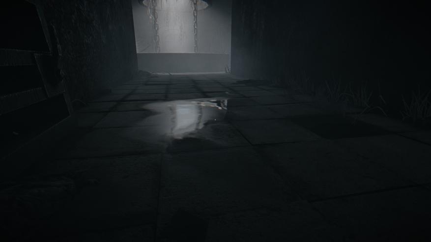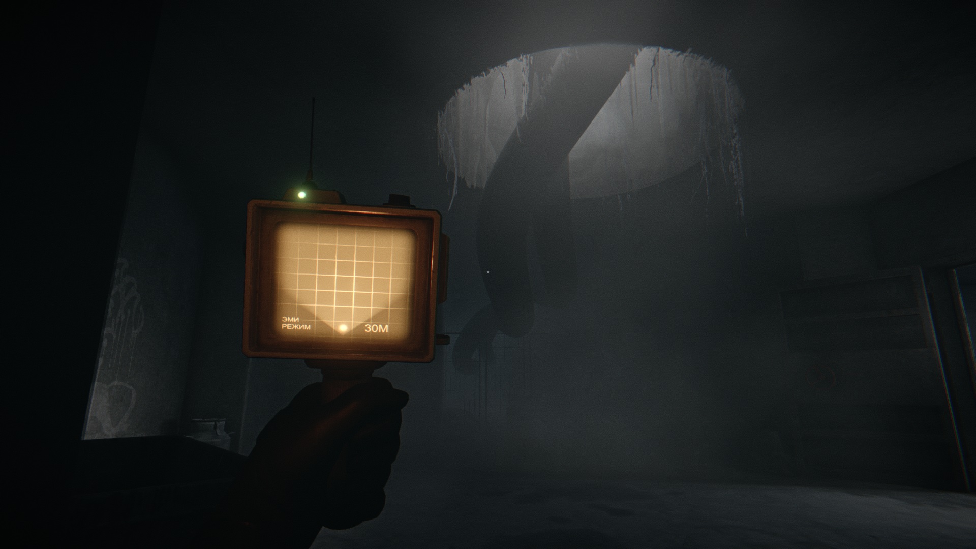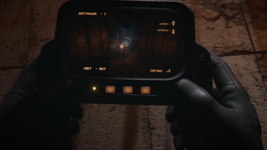 При включении дрона протагонист берёт в руки контроллер управления с экраном, на котором появляется изображение с камеры летательного аппарата. В том числе, можно подлететь с помощью БЛА к Игнату, взглянуть на него со стороны и осветить фонарём. В этот момент мы видим свет дрона на руках протагониста, который держит контроллер. Приятная мелочь. Управление удобное. Аппарат не может улетать дальше 40 метров от контроллера. Вместо решения первой задачки с дроном, я с удовольствием облетел всю округу, нырнул в колодец, поднялся по огромной трубе вверх. Сложностей с перемещением не было. И без проблем нашёл переключатель, который надо было нажать дроном, так как это единственный приметный активный объект на данном участке, что говорит о грамотном геймдизайне. Необычное, скажем прямо, применение техники. Иных свойств дрона в демо не обнаружено.