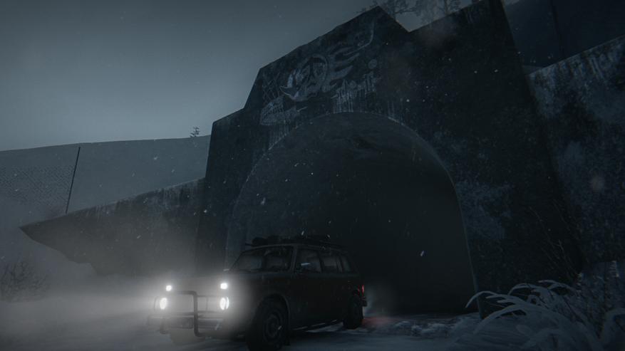 Визуальная часть выполнена нормально. На локациях много детализированных текстур и приятных эффектов. Например, можно увидеть, как гуляют блики задних фар на кузове, номере, бампере автомобиля и дорожном покрытии. Или, допустим, смену отражения окружения на капоте авто во время езды. В лужах мы видим размытое, динамичное отзеркаливание антуража, как-то, цепей, свисающих с потолка. Отражения сугробов струятся в потоке речушки. Живо смотрятся световые дорожки на снежном насте и рассеивание лучей от включенных фар. Взаимодействие света и тени реализовано толково, в том числе в динамике. Хотя отражений Игната нигде не обнаружено, как и его теней. Да и ноги у него отсутствуют. На крупных частях локации (вне зданий и помещений), встречаются невидимые стены, которые не дают, например, искупать протагониста и авто в речушке.