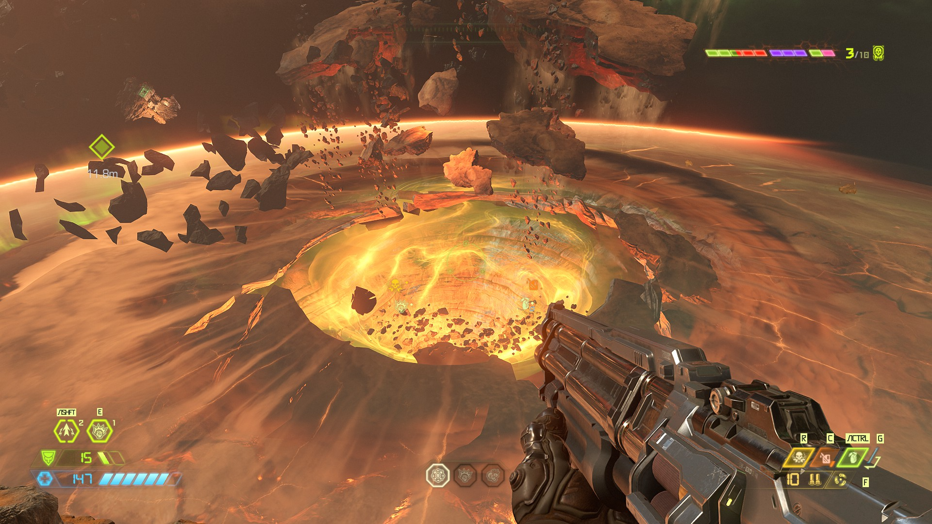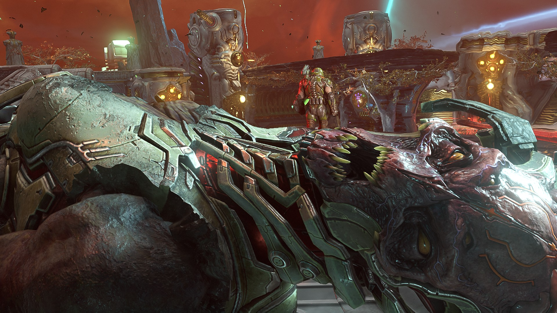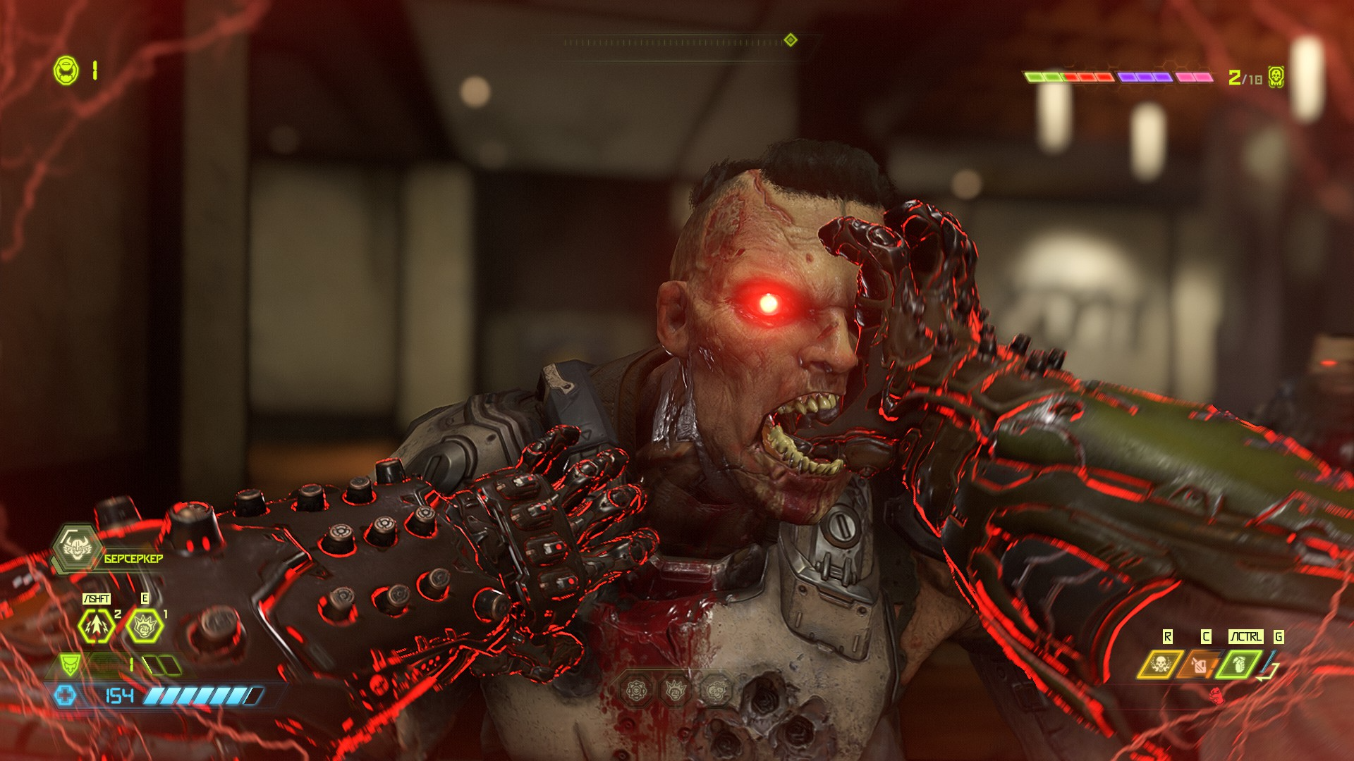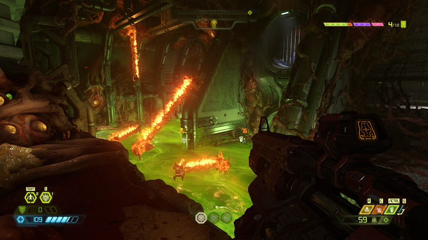И не только посмотреть, но и послушать. В наличии музыка из классических игр DOOM. Оружие в игре то же, и «старички» отведут душу на распоясавшихся демонах. Среди которых будут как старые Арахнотроны — привет Оливии Пирс, так и новые, такие как Мародёры. А учитывая, что теперь большую часть вооружения можно улучшить, разговор с потусторонними «нелегалами» заиграет новыми красками. К слову, о красках.