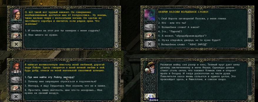 И схема, которую вы видите в Алероте, повторяется и дальше – но в больших масштабах. Когда дело заходит до заданий или взаимодействия с миром, игра выглядит неплохо. Юмор, неожиданные повороты, задания на взаимодействие с предметами. Бывают и места, где у вас есть выбор, как поступить – пусть их не так уж и много. Но когда дело доходит до боевки, то вы наталкиваетесь на бесконечные поля и подземелья, заполненные болванчиками. Можно было бы сказать – ну, в этом же и суть Diablo! Возможно, эту игру можно было бы сравнить с первой частью Diablo (в которую я, честно признаюсь, не играл). Но уже с Diablo II она не идет ни в какое сравнение – хоть и вышла на 2 года позже. Прокачка скучная и несбалансированная, вещей мало, враги в большинстве своем крайне однообразны. Лично мне боевую часть игры хотелось пропустить как можно быстрее.