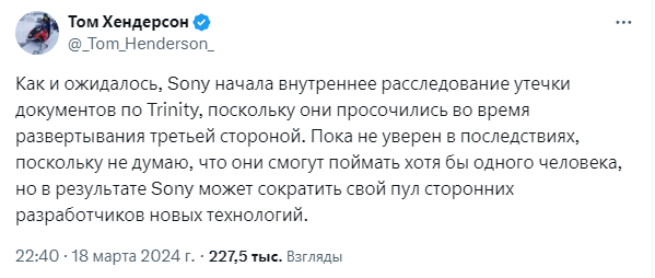 На данный момент Sony никак не комментировали заявление журналиста.