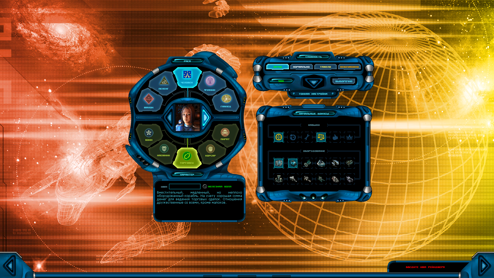 На выбор игроку дают пять рас и пять классов. Если потом начнутся сожаления по поводу сделанного выбора — не торопитесь начинать игру сначала. На пиратской станции за кредиты можно сменить видовую принадлежность. Так же на выбор классы: воин, торговец, наёмник, корсар и пират. В зависимости от расы и класса будет меняться не только отношение к персонажу, но и стартовый набор для развития. Если взять корсара человека, то счёт в банке будет весомым, но при этом будут ужасные отношения с гаальцами и пеленгами.
