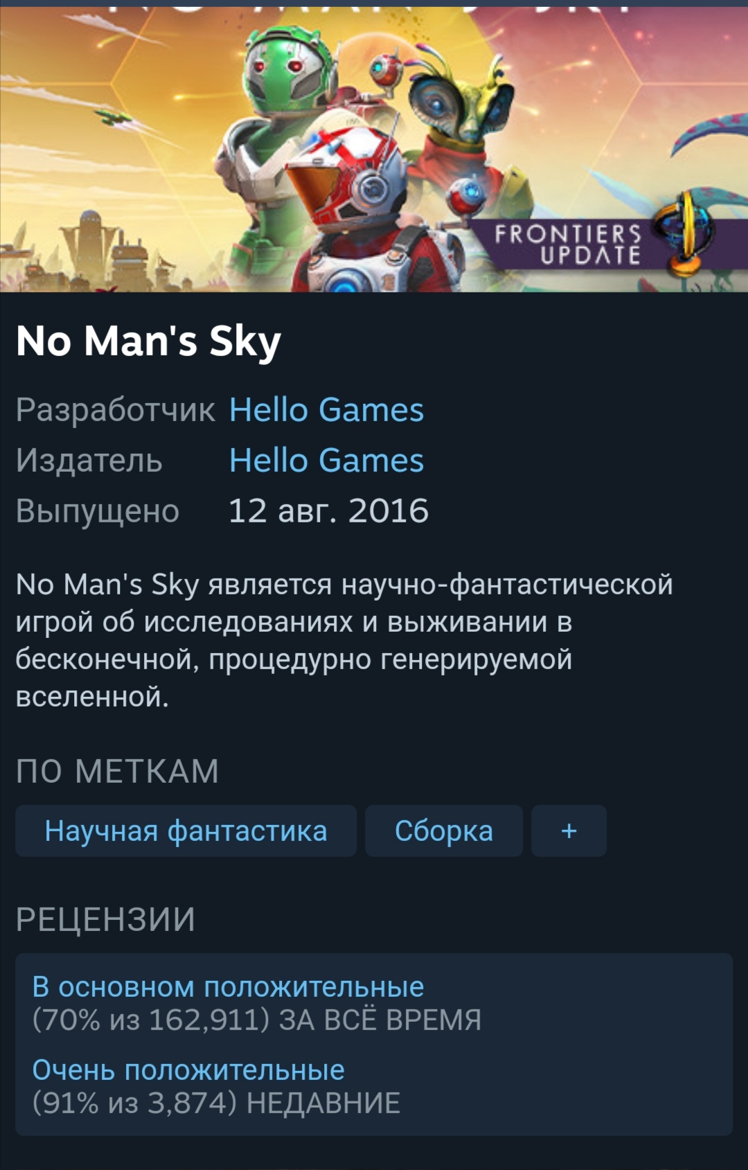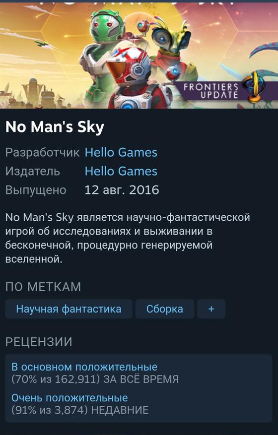 Спустя пять лет после провала с запуском No Man's Sky, наконец, заслужил неизменно положительное признание пользователей в Steam.