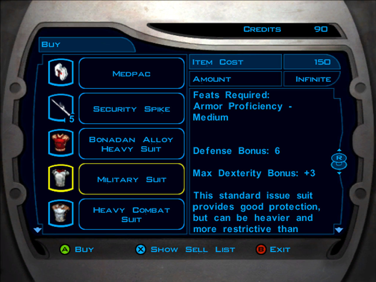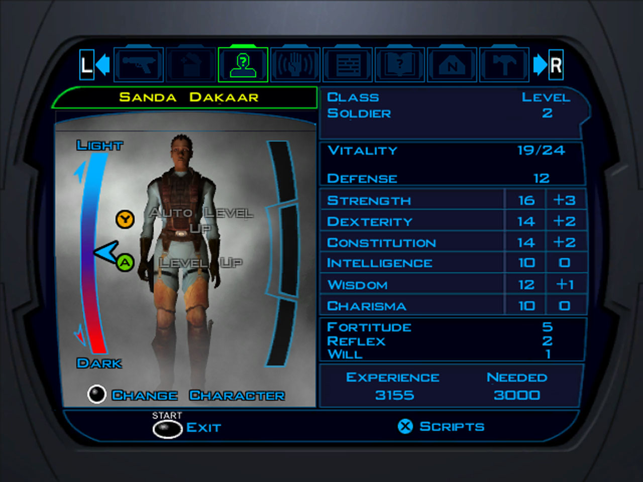 Если честно, мне в то время 3-я редакция DnD казалась какой-то казуальной и упрощённой. Особенно смешно, сейчас наблюдать мнение, что «трёшка» это какая-то «хардкорная» ролевая система. Ну у всех, наверное, свои предпочтения в этой сложной теме. Ролевая система KotOR базируется на так называемой системе d20. Которая в свою очередь представляет из себя крайне урезанную 3-ю редакцию DnD, также адаптированную под реалии Star Wars. В игре присутствуют 3 начальных класса, и 3 джедайских (что-то вроде престиж классов из DnD). Самое интересное, что их можно комбинировать в любой последовательности. Легко можно начать солдатом и стать джедаем-консулум, например. Запороть персонажа очень сложно, но лучше заранее оставить побольше уровней на джедайские классы. Впрочем никто не мешает развиваться на бластеры, и не пользоваться «световой палкой» вообще.