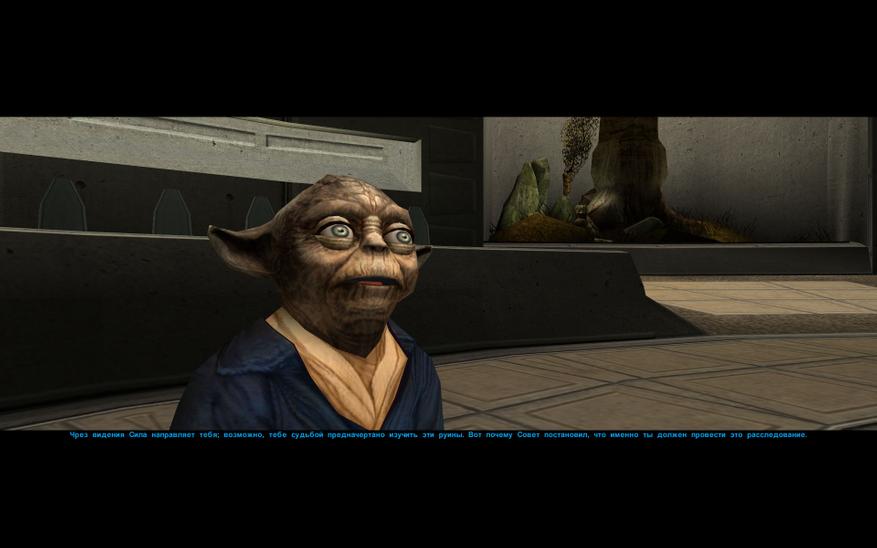 Немного обидно было, что я не мог пройти эту игру на релизе. Мой компьютер на тот момент — AMD Duron 1300 со встроенной графикой. Новые игры требовали аппаратной поддержки шейдеров, и поэтому просто не запускались. Хотя Morrowind кое-как работал в 640х480, но я тогда им так и не проникся. Конечно «хороша ложка к обеду», и очень многие игры впечатляют графикой на релизе, но спустя несколько лет воспринимаются совсем по-другому. В то время производительность видеокарт совершала существенные скачки практически каждый год, и поэтому компьютер, собранный в 2006 году, мог предположить куда больше чем даже самая топовая машина из 2003. Именно в 2006 и случился долгожданный апгрейд, а с ним и целый пласт пропущенных игровых релизов. Новая машина была собрана на Pentium D и Radeon x1800xt. Спустя много лет я понимаю, что можно было собрать и получше, но тогда это было, примерно, как после Dendy сразу перейти на PlayStation 2. И конечно одной из первых игр на новом ПК стала SW: KotOR. Этот компьютер позволял выставить все настройки на максимум в разрешение 1024х768 (за исключением тех, что требовали видеокарт Nvidia), и при этом не испытывать даже намека на тормоза. Картинка была очень четкая, благодаря сглаживанию. Именно тогда почему-то хотелось максимально «не мыльного» рендеринга. Вообще тогда телевидение высокой четкости только-только начинало свой путь массового внедрения в каждый дом. Как раз тогда, только персональный компьютер за вменяемые деньги мог предположить действительно чёткую картинку на фоне игровых консолей на недорогих кинескопных телевизорах.