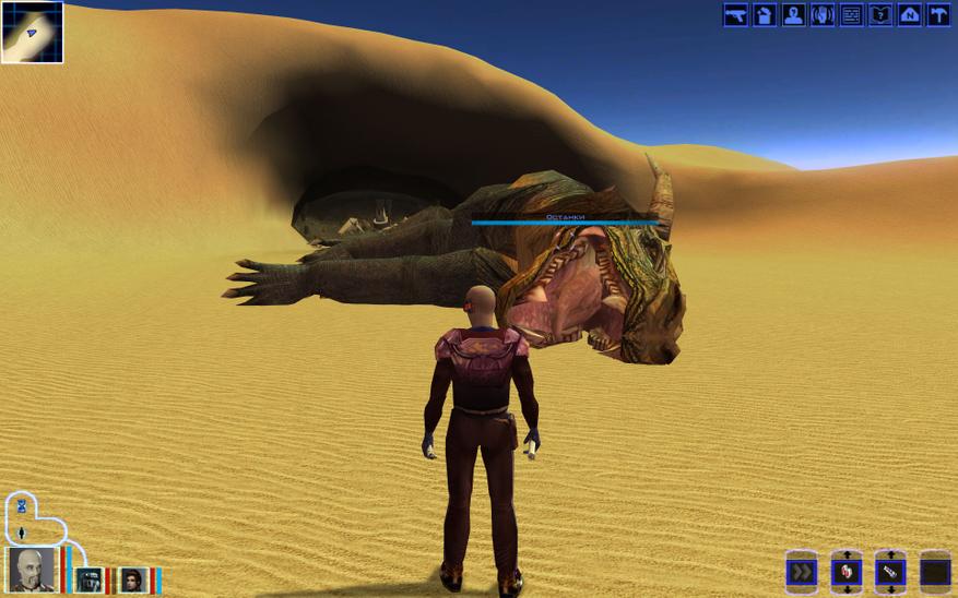 - Тарис. После непродолжительного вступления, мы оказываемся на не самой дружелюбной планете. Здесь предстоит: завербовать Мишн и Заалбара, спасти Бастилу и заиметь себе «Эбеновый ястреб». На Тарисе довольно много побочных заданий, есть гонки на свуп-байках, бои на арене и приличное количество моральных выборов. Раньше хотелось эту планету поскорее промотать, чтобы стать наконец-то полноценным джедаем. Сейчас она вполне себе неплохо воспринимается в контексте сценария. Я кстати закончил её на 6-ом уровне. Можно, наверное, было и на более низком, но лень было заморачиваться. Если повышать уровни начальных классов, то на Дантуин Реван прилетает примерно 8-10-го уровня;