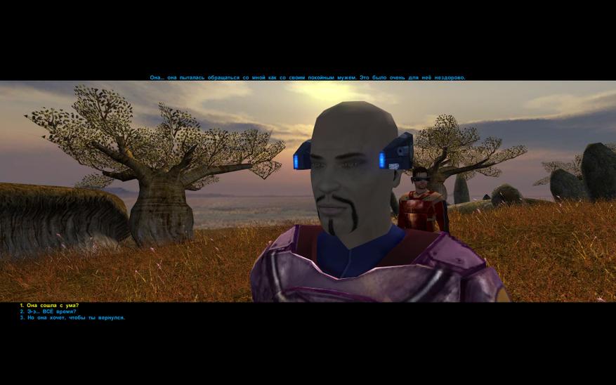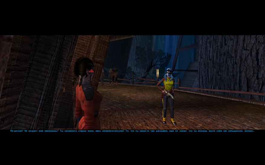 - Джухани. Люблю таких персонажей. Потому что в игре можно даже и не заметить, что это потенциальный спутник. В любом случае убивать при первой встрече не стоит. В отряд брал, потому что она джедай;