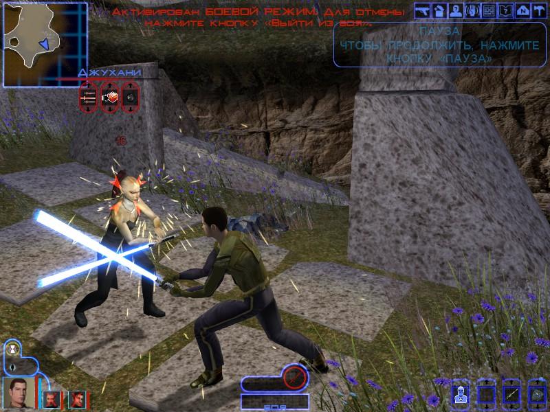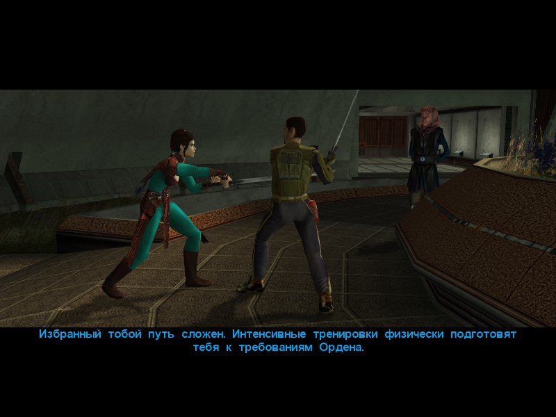 Преимущества качественного ролевого гемплея состоит в адекватной системе поощрений/наказаний игрока за любой выбор, что он может сделать. Ролевая система Mass Effect призвана награждать только за конкретный выбор между двумя ролями и только в диалоговом окне (крайне скудном без упора на конкретный ролевой тип). Диалоговая система KOTOR остается рабочей в любом случае. Выбор кем быть у вас никогда не отнимают, разброс же между темной и светлой сторонами заключен в выборе сил, которые вы можете применять. Система штрафов за тип способности и приверженность героя одному из путей вознаграждает за любой выбор (включая серый). И уж что KOTOR точно умеет, так это быть эпичным. Первый поединок джедаев с вами в роли беспомощного зрителя; первое столкновение с ситхами на вашем личном пути; первые уроки джедайским дисциплинам; личный световой меч, на который вы столько облизывались, собранный вашими собственными руками; первая дуэль с падшим джедаем на клинках и на словах. Эмоции этих сцен захлестывают спустя годы после первого прохождения. Даже финальный поединок с темным лордом не казался мне настолько эпичным как первое столкновение философий джедаев и ситхов с запутавшимся сокурсником. Обращаясь к философии вселенной со всей серьезностью, игра ни на секунду не перестает быть увлекательнейшей адвенчурой.