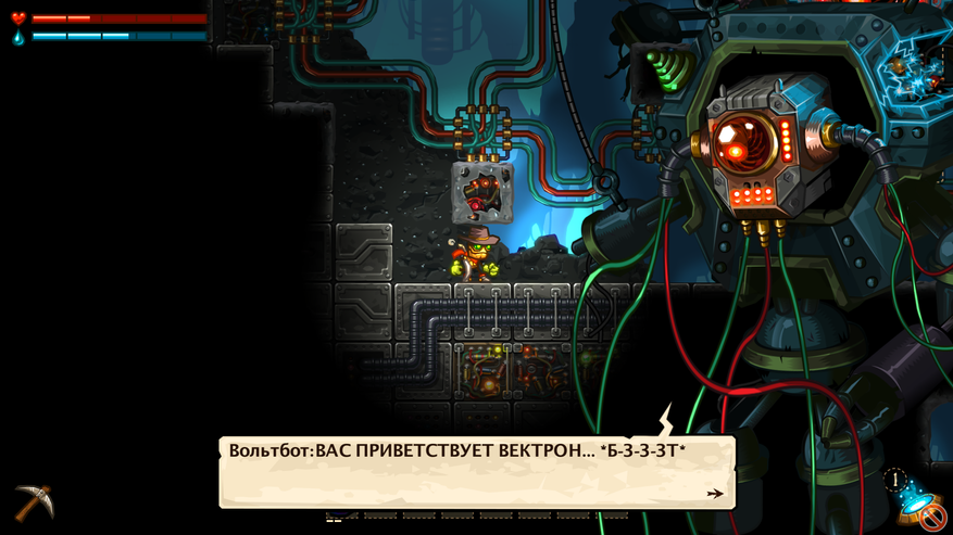 Начиная продвинутыми технологиями и заканчивая тем, что скрывается под толщами земли. А именно — древний вольтбот. Как несложно догадаться, это такой же бот, как и Расти, но работающий за счёт электричества, в то время как Расти и остальные стимботы работают на пару. Об этом я выскажусь детальнее, но позднее.