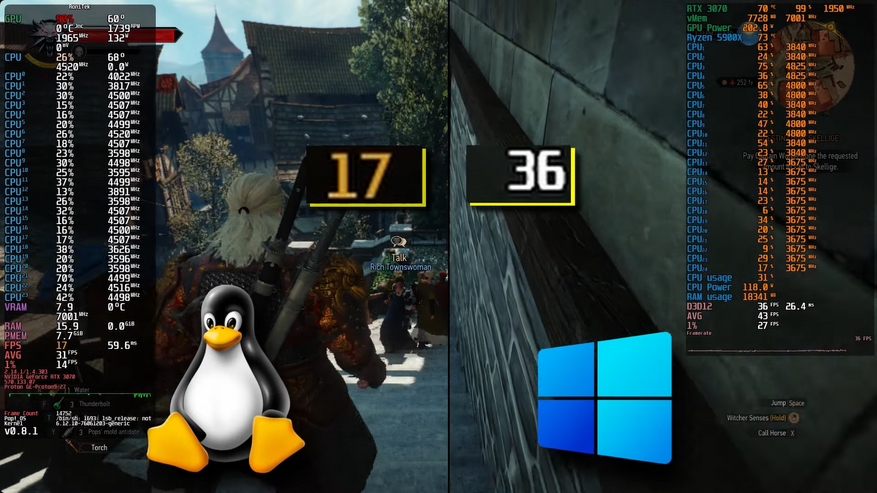 Главное преимущество Linux (хотя и не всех дистрибутивов) перед Windows — меньшее потребление ресурсов и отсутствие программного мусора. Однако из-за игнорирования платформы крупными издателями поклонникам творения Линуса Торвальдса для запуска игр приходится использовать сторонние реализации Windows API (Wine/Proton) и ретрансляторы кода (DXVK). Это неизбежно ведёт к дополнительным накладным расходам производительности и не всегда гарантирует точное воссоздание визуальных эффектов, так как их реализация может попросту отсутствовать в текущей версии ретранслятора или графического API. Так что устанавливать Linux на слабый ПК в надежде на то, что это даст буст FPS, имеет смысл, только если вы играете в нативные игры или игры далёкого прошлого, которые плохо распараллеливаются по ядрам или используют устаревшую версию DirectX.