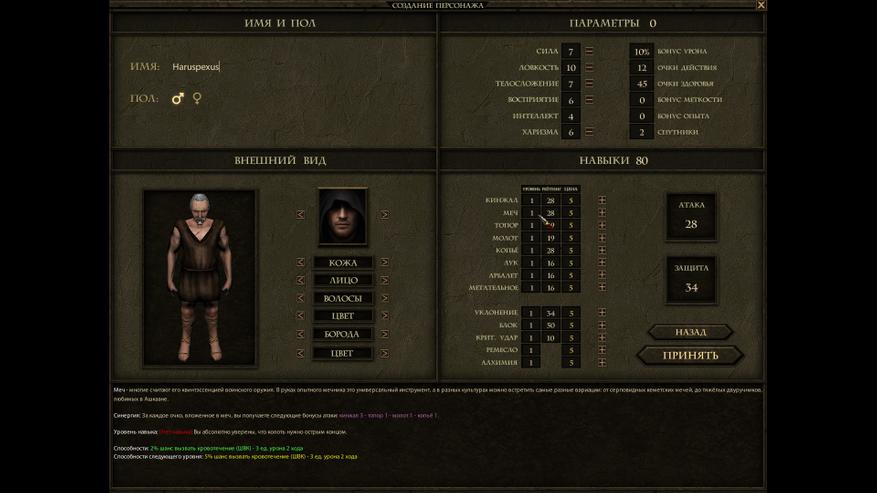 навыков и характеристик. Характеристики вполне стандартные и от вкачанных в