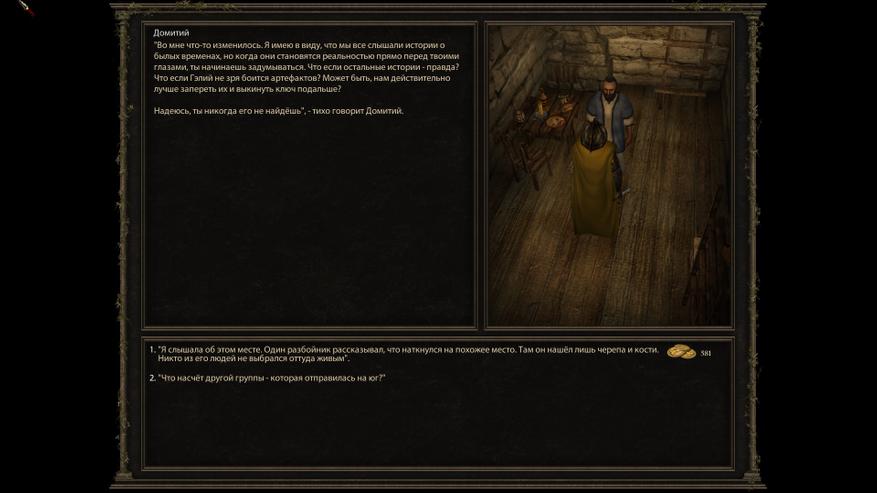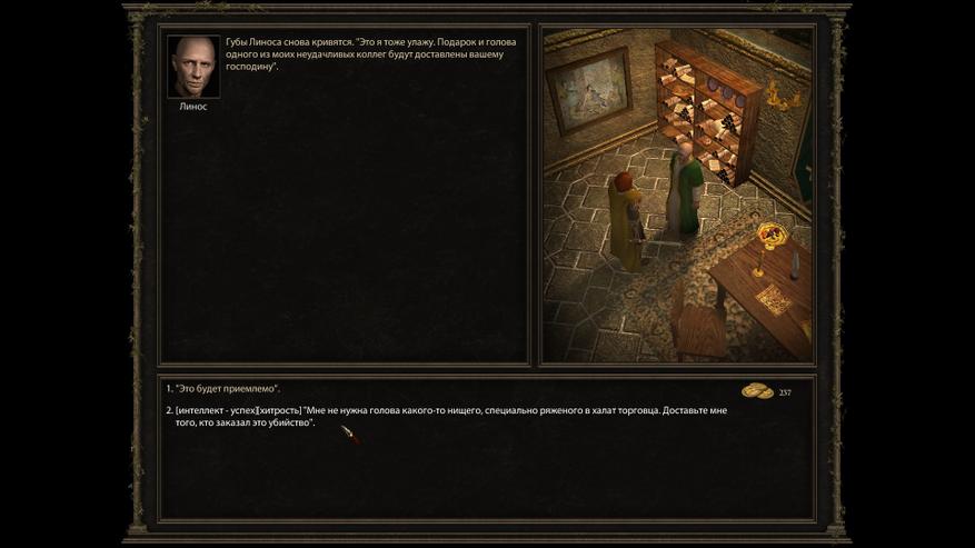 В диалогах приходиться думать и вдумчиво выбирать реплики, а не просто нажимать на строчку, где показана успешная проверка навыка. И иногда даже случаются случаи, когда новые диалоги открываются в зависимости от того с кем игрок до этого говорили или какой информацию в мире откопал.