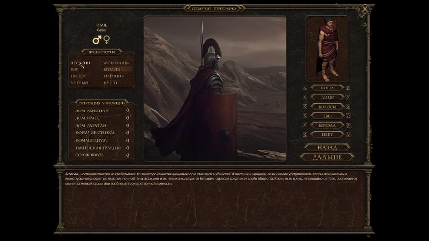 Выбор предыстории — во многом определяет дальнейшее прохождение. Это не выбор класса, а выбор того, какое место в мире имел персонаж игрока. Выбрав благородного отпрыска (Претора), игрок будет начинать в богатом районе стартового города и его сюжетная линия будет напрямую связана с главами города. Выбрав же учёного, то игрок начнёт помощником местного учёного и будет выполнять мелкие поручения для него. Соответственно выбрав свой путь, игрок закрывает себе доступ к части сюжетных веток. Нельзя будет вступить в гильдию ассасинов, воров или имперский легион и лишь поверхностно узнать персонажей с других сюжетных линий и под другим углом. По своему опыту добавлю, что прохождение за претора и учёного у меня вышли с совершенно разными. Если за учёного всё-таки удалось выяснить тайны местной магии и то, что утечка магии = утечка радиации, то за претора мне удалось лишь запутаться в том, а какому дому служить.