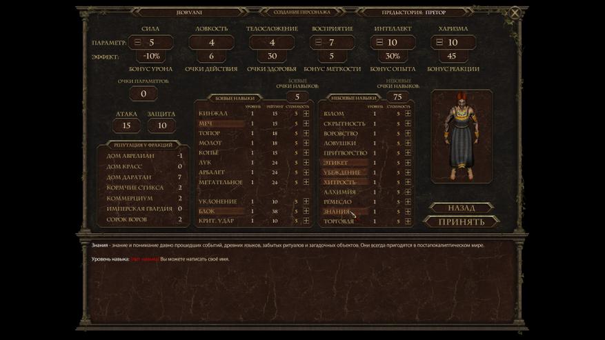 Традиционно после выбора сложности идёт создание персонажа. Из особенностей — вырезаны все социальные навыки.