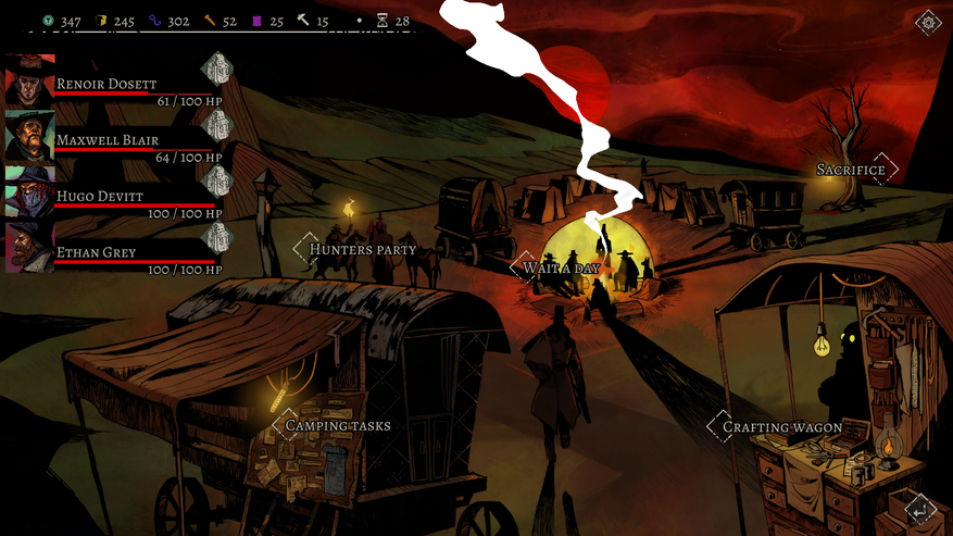 В своих путешествиях Охотникам не раз придётся останавливаться в лагере на той или иной локации, где Чиф сможет отдавать приказы своим подопечным. Здесь и рекрутинг «свежей крови», и крафт оружия, амулетов и расходных предметов, и куда в этом тёмном мире без распределения обязанностей. Пока кто-то будет залечивать раны после последней стычки с чудовищами, а один из охотников с прокачанным перком «Craftsman» будет делать новые ружья для собратьев, другие пойдут на разведку чтобы добыть припасов для дальнейшего путешествия (здесь и еда, и ресурсы для крафта), или же будут стоять на страже лагеря.