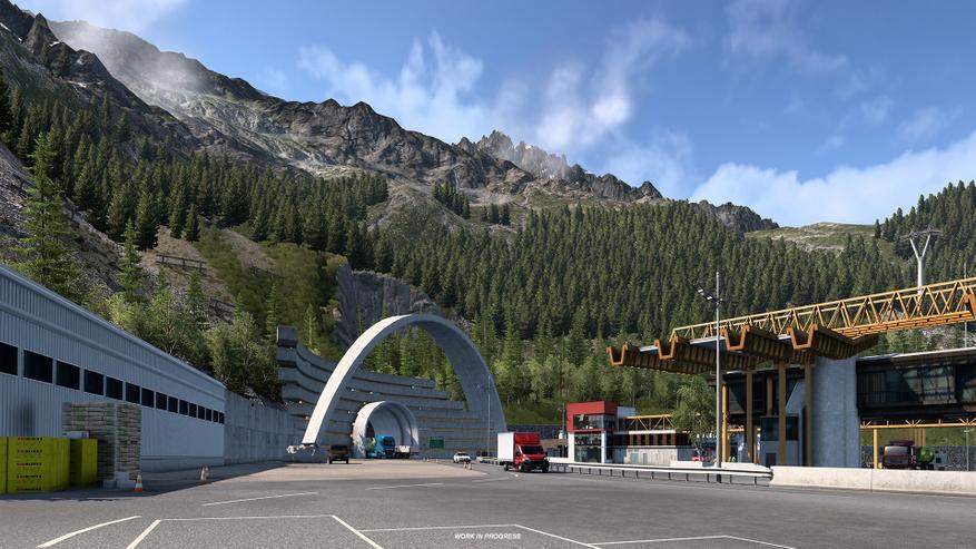 Монблан, как говорят сами разработчики, является настоящей жемчужиной Альп. Она долгое время очаровывает путешественников, возвышаясь над границей Италии и Франции и являясь при этом самой высокой точкой Западной Европы. SCS акцентируют внимание на том, что Монблан — это не часть Швейцарии, поэтому работа команды вышла за пределы её границ, и разработчики не могли пропустить туннель Монблан, являющийся культовой дорогой между долинами Шамони во Франции и Аостой в Италии, поэтому новые трассы А40 и Е25 станут главной чертой будущего обновления.