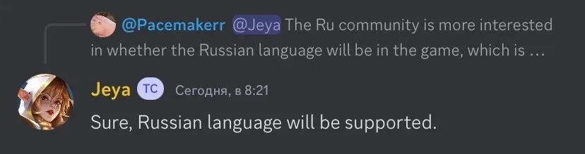 На официальном мероприятие, посвящённому скорому глобальному релизу «убийцы» World of Warcraft китайской MMORPG Tarisland, прошедшем на официальном канале игры в Discord. Комьюнити-менеджер проекта неожиданно приятно удивила всех русскоязычных поклонников игры. Отвечая на вопросы игроков, сотрудница компании Tencent, скрывающейся под псевдонимом Jeya, заявила, что грядущая китайская кросс-платформенная MMORPG официально обзаведётся полной поддержкой русского языка.
