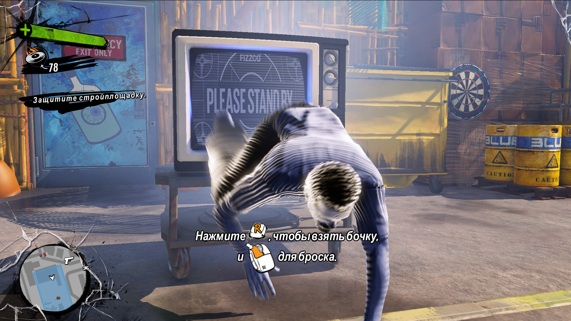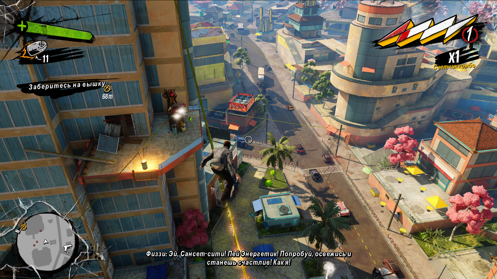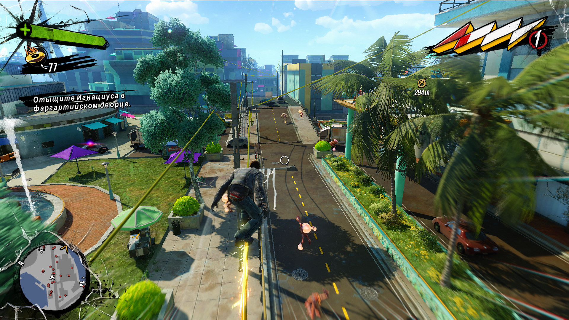 Вот тут душу отведут фанаты дилогии игр Prototype. Бегать, прыгать и паркурить можно и нужно. Ну, а для быстроты передвижения можно скользить по перилам и подобным поверхностям. В наличии перемещение путём употребления алкоголя до отключки и прихода в себя в нужном месте. Приятной мелочью было то, что скользя можно от души зарядить пробегающим мимо с ломика ну или, как это было в моём случае, с гитары. Присутствуют и побочные квесты разного уровня юмора и абсурда.