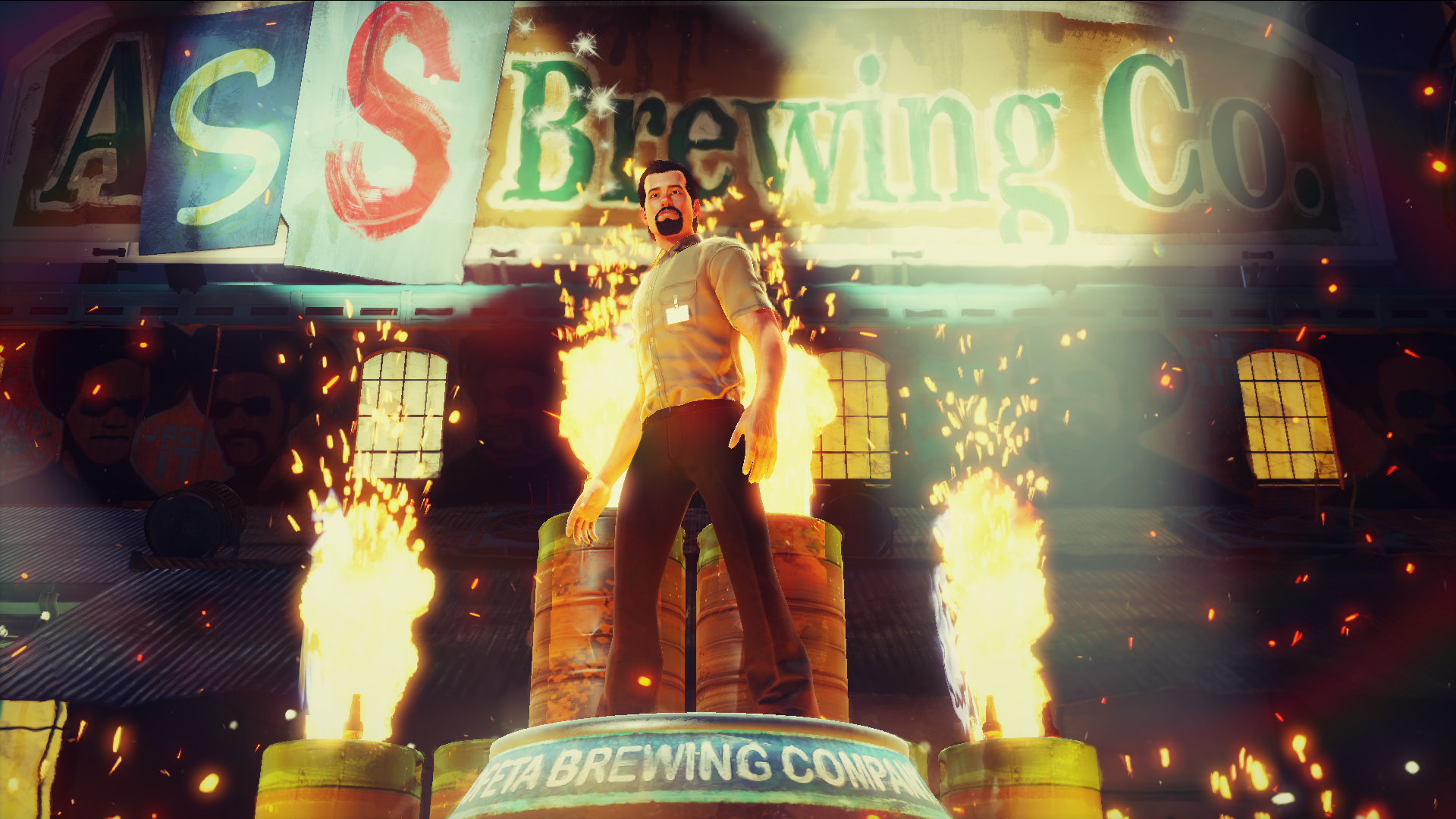 Благодаря мультяшному визуальному стилю игра сохранилась на пять с плюсом. Даже и не скажешь, что на пекарни Sunset Overdrive вышла шесть лет назад, в 2014 году. Плюс не стоит обманываться возрастом. Системные требования у игры — моё почтение. Одна только минимальная видеокарта требуется NVIDIA GeForce GTX 750 Ti. Но взамен игра даёт бесшовный мир, живущий своей жизнью. Перебравшие нападают на людей, а роботы дают жара и тем и другим.