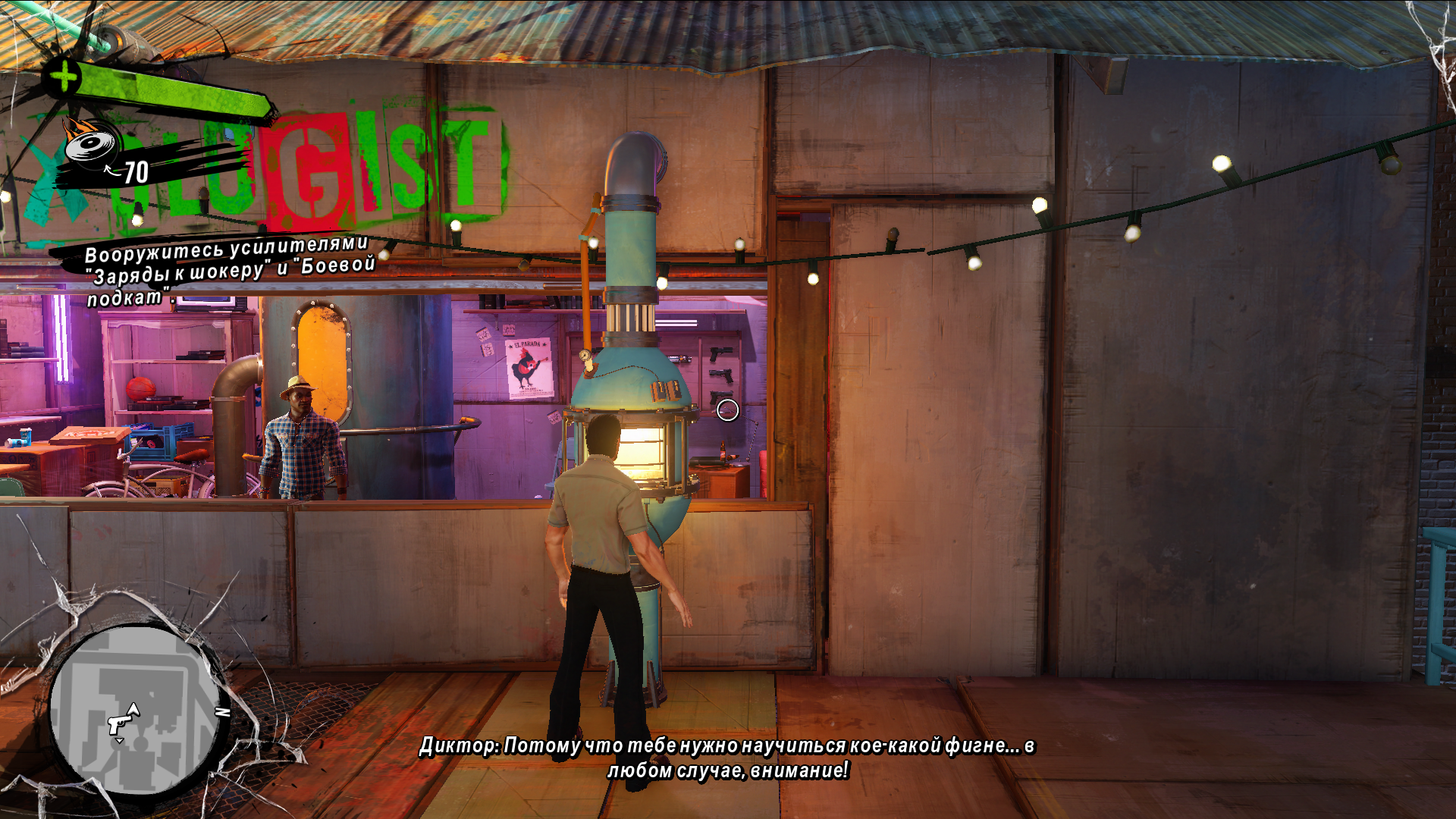 Ну, а робота Физзи озвучивал Дмитрий Филимонов. Дмитрий известен озвучкой таких персонажей, как Пряня, дядя Айро и Уильям Джойс из игры Quantum Break. Естественно, только этими ролями амплуа Дмитрия не ограничивается, но писать про всех места не хватит. И да, вы правильно поняли. У игры полная локализация и озвучка на русском языке.