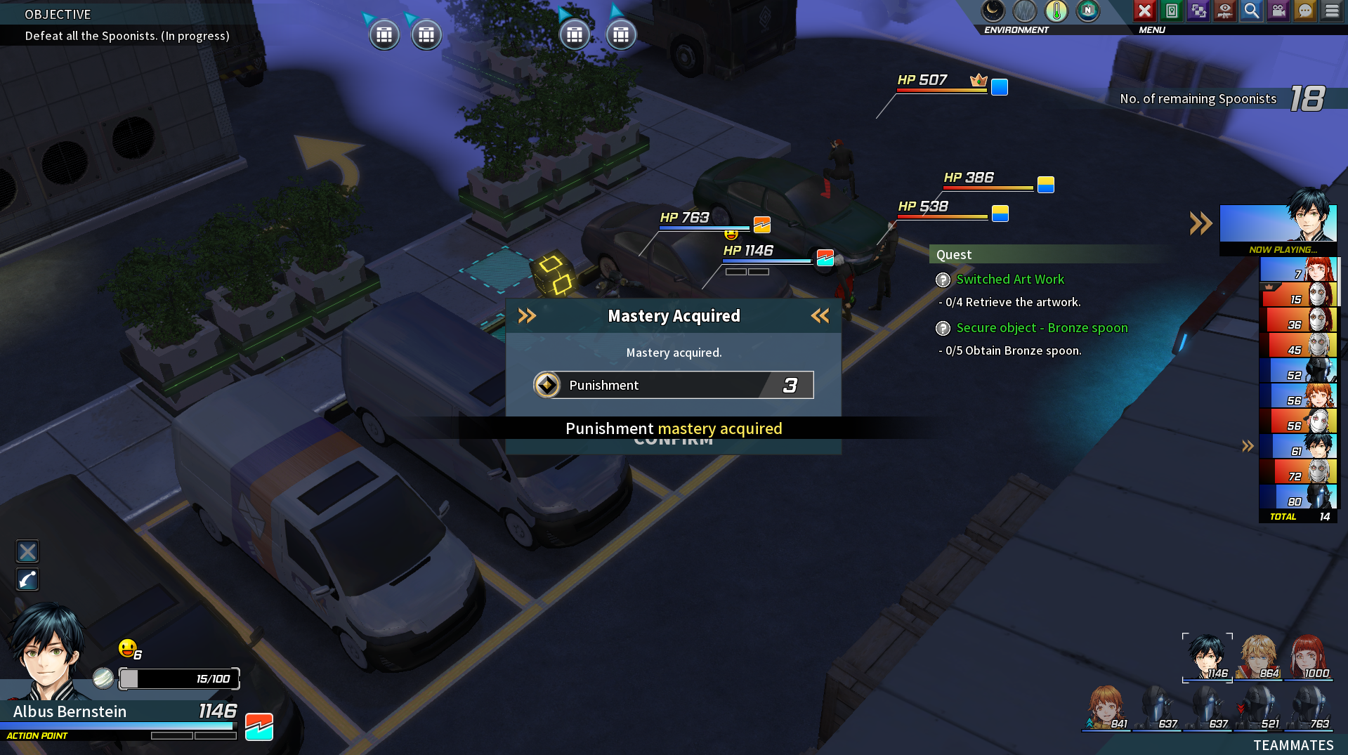 Это приводит к тому, что, хоть система укрытий работает так же, как в XCOM, но она играет гораздо меньшую роль, поскольку основная тактика сводится не к позиционным перестрелкам, а к максимально быстрому сближению и ближнему бою. При этом, система попаданий в игре гораздо честнее, чем в XCOM. Промахов по вплотную стоящим врагам в это игре я не помню. Однако, система попадания здесь несколько сложнее. Помимо промаха, от удара можно увернуться (и от выстрела из автомата тоже, это же аниме). Удар можно заблокировать и тогда по герою пройдёт лишь часть урона (заблокировать пули мечом, естественно, тоже можно). А само попадание может быть обычным или критическим. Критическое попадание способно нанести в несколько раз больше урона, чем способен пережить рядовой бандит. Но, при этом, сделать его не так то и просто.