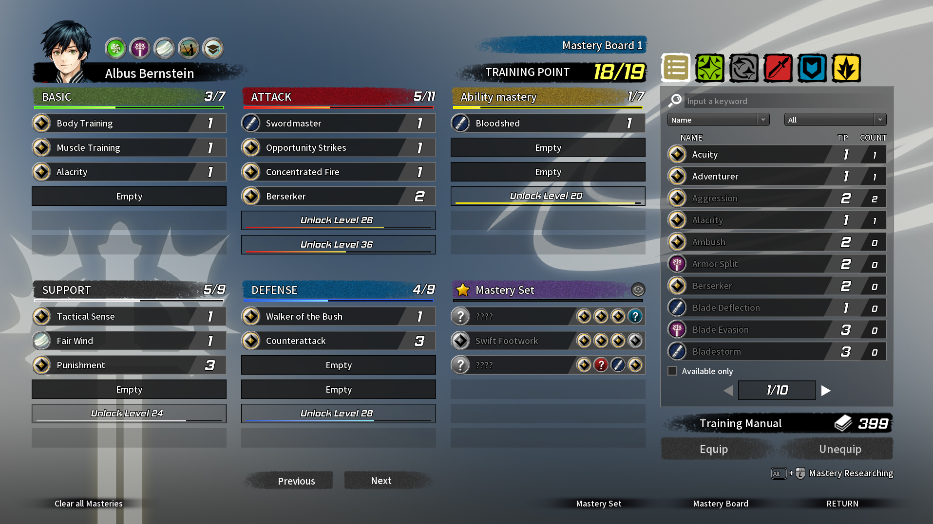 И самая интересная здесь — система навыков. В игре есть более 600 различных навыков! Они варьируются от простого баффа к здоровью или силе атаки, до возможности контратаковать. Количество навыков, которые можно дать каждому персонажу, ограничено и они разбросаны по разным категориям. Поэтому построение билдов в этой игре крайне нетривиальный момент.