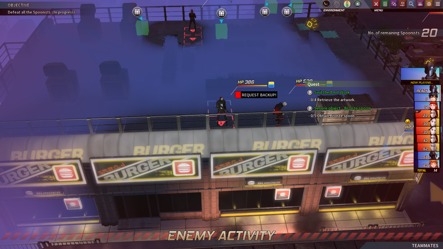 Враги на карте не соединены в одну общую коммуникационную сеть (по крайней мере в начале игры). Они разбиты на независимые группы, раскиданные по всей карте. И атака на одну из этих групп не приводит к автоматической тревоге на всей карте. Так что, зачистив одну группу, к следующей так же можно будет незаметно подкрасться и неожиданно напасть. Это, одновременно, и плюс, и минус. С одной стороны, тактическая задача расширяется, поскольку требуется определять порядок устранения всех этих групп. С другой стороны, ближе к концу миссии не редки случаи, когда какую то группу в начале просто не заметил и приходится несколько ходов к ним возвращаться через всю карту. Решение своеобразное. К тому же со временем появляются дополнительные возможности, которые нивелируют недостатки подобного подхода. К примеру, полицейский радар. Его вводят в строй уже во время миссии, и он отмечает на карте всех оставшихся врагов. Но и враги развиваются и со временем учатся звать подмогу.