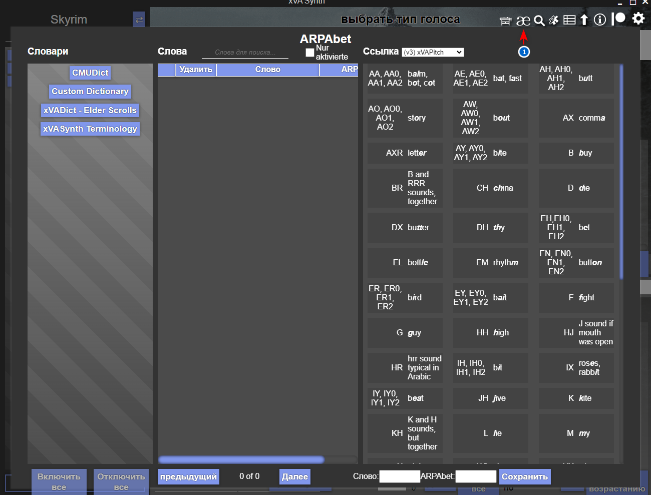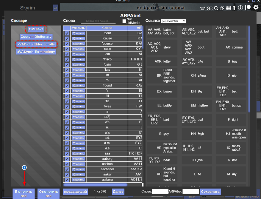 6. Скачиваем обновлённый русский словарь транскрипции английских слов Russian Dictionary для лучшего звучания NPC. А также вспомогательный плагин настроек lip and .fuz plugin for xVASynth, FaceFXWrapper 0.4 и xVADict — Elder Scrolls.