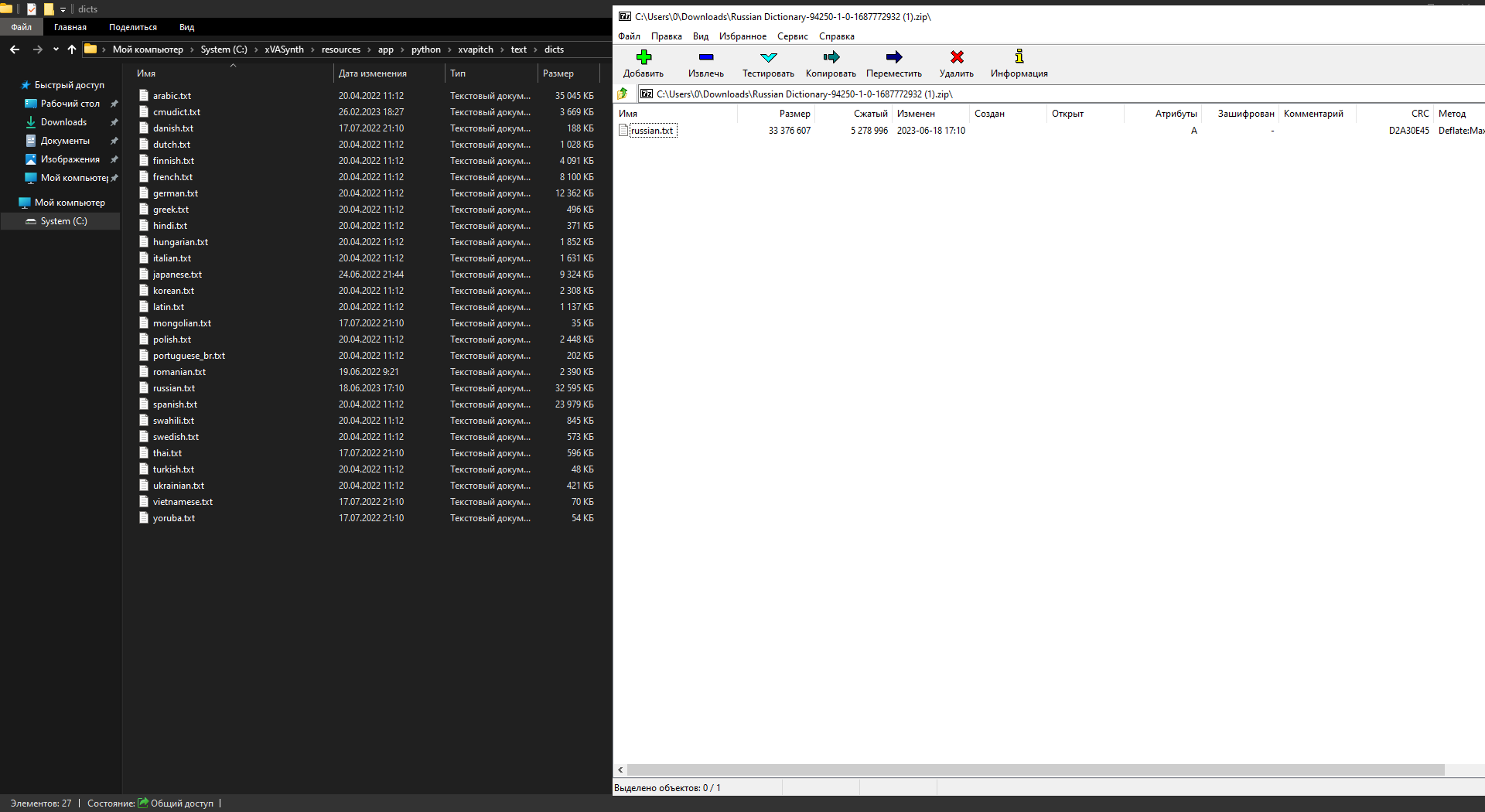 Вспомогательный плагин и xVADict — Elder Scrolls распаковываем в папку с программой xVASynth v3.