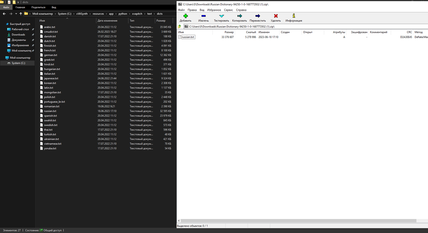 7. Переносим файл russian из архива Russian Dictionary в: